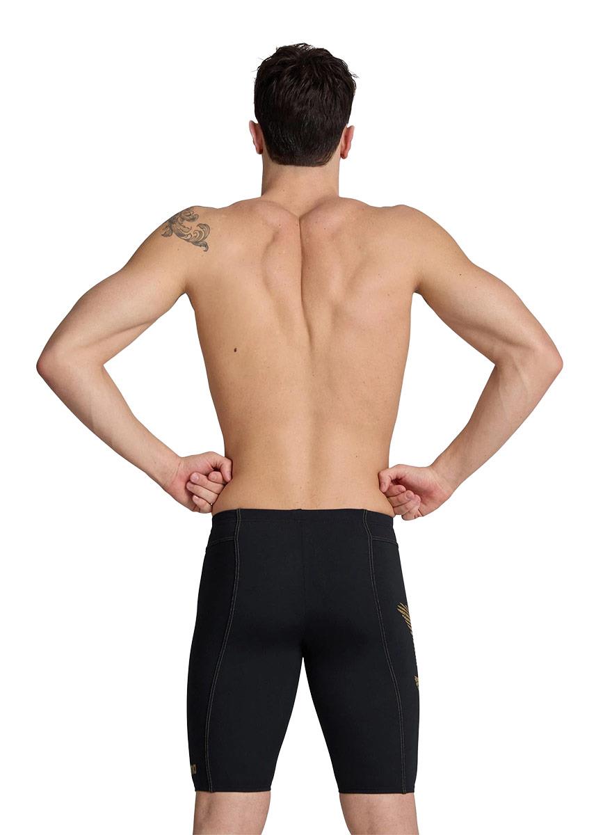 To fly above the water with the speed of a falcon is what elite swimmer Kristóf Milák tries to achieve day after day in the pool. A gold graphic of his totem animal decorates these Arena Signature Falcon Swim Jammers, inspired by the Hungarian athlete. Arena have designed these men’s training jammers with a gold graphic of the athlete’s totem animal. This bold men’s training swimsuit measures 45 cm long and streamlines the body from the waist to the knees.