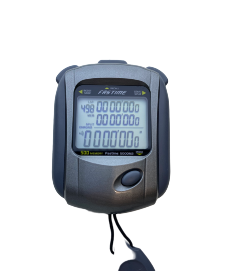 The Fastime 500DM2 is a Decimal minute 500 lap segmented memory triple display stopwatch.