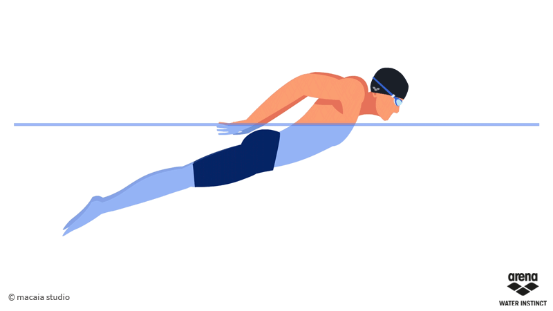 For optimum speed through the water, make your head hit the water just before your hands do. This will aid the motion of your cycles.
