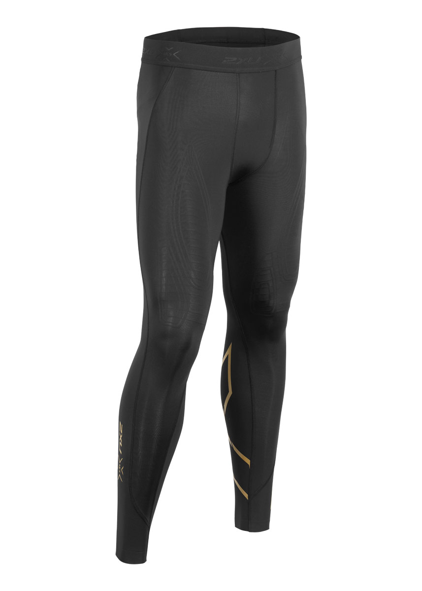The 2XU MCS X Training Competition Tights in black and gold are designed to support key muscles under impact from High-intensity interval Training. Cross Training involves a range of dynamic movements that are physically demanding, these Tights provide anatomically mapped muscle support for reduced muscle fatigue, damage and reduced risk of injury.