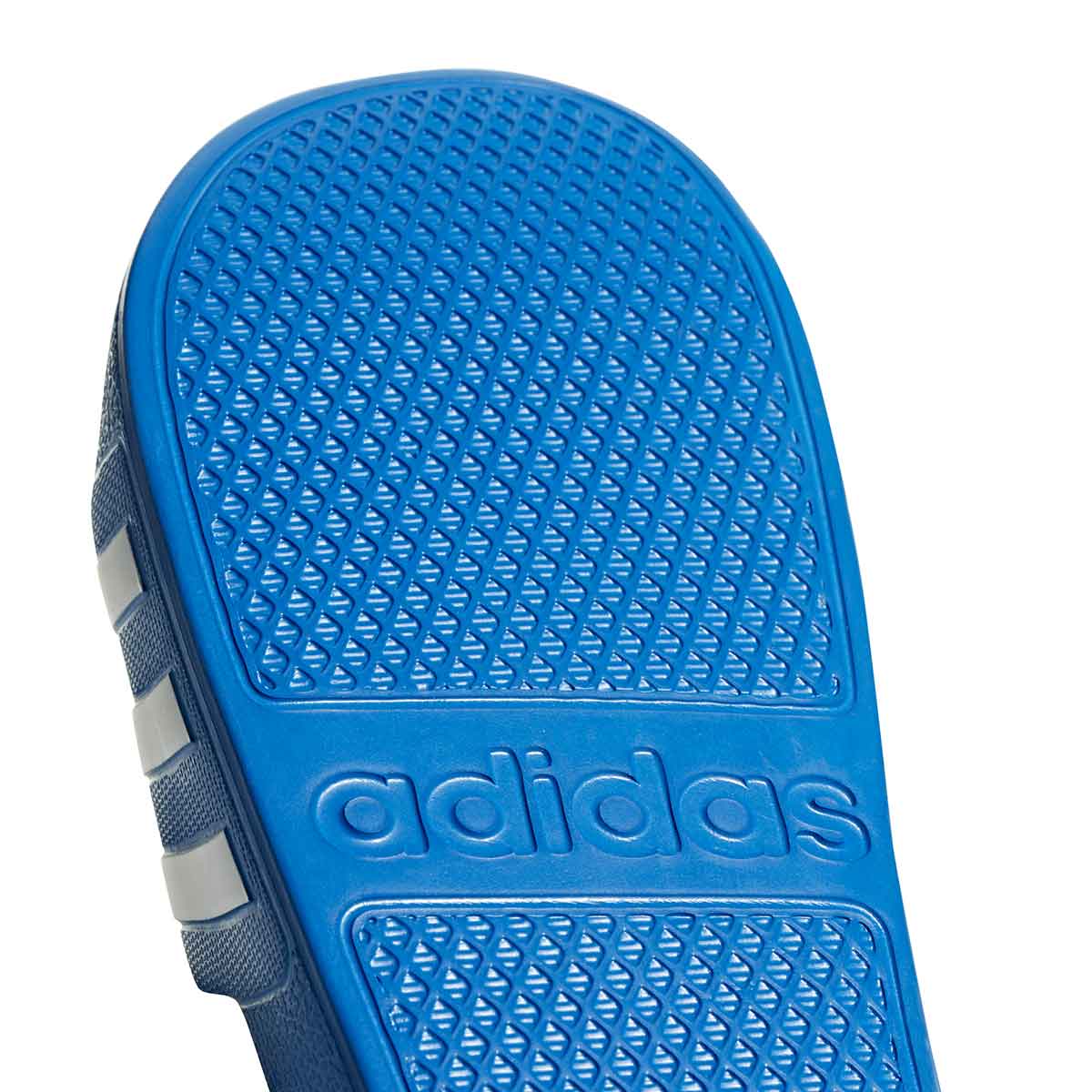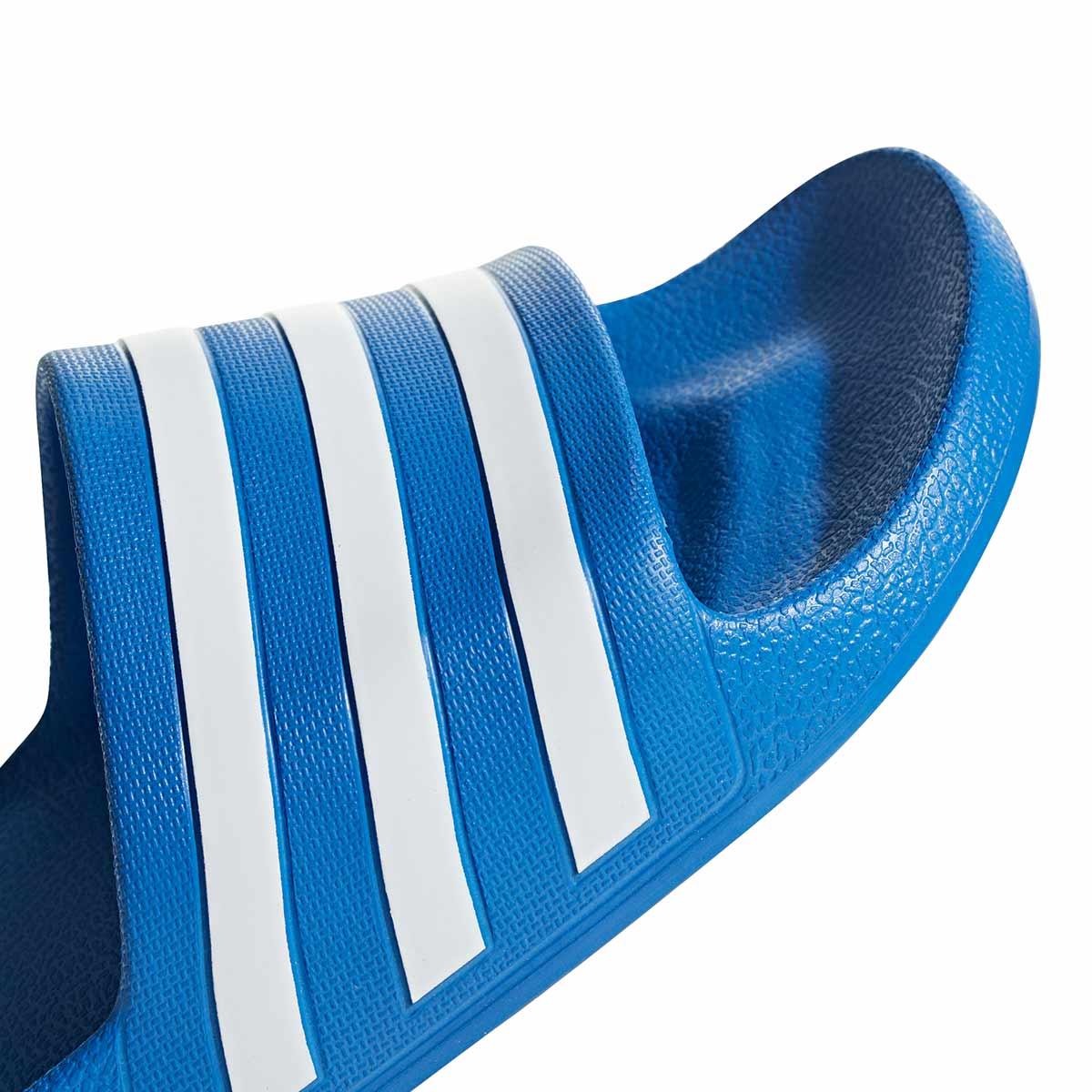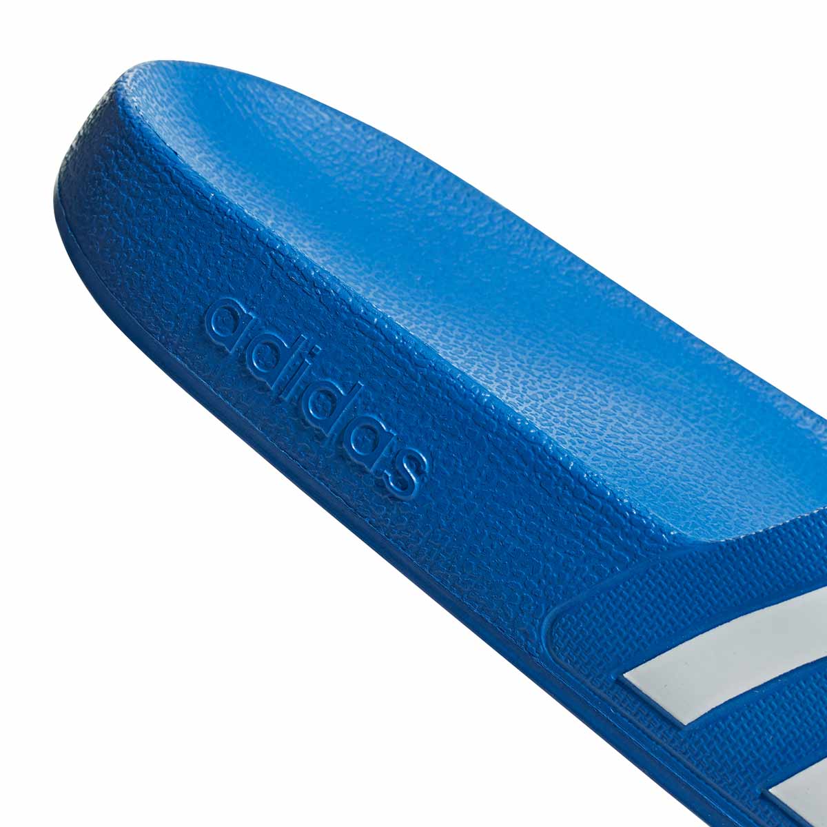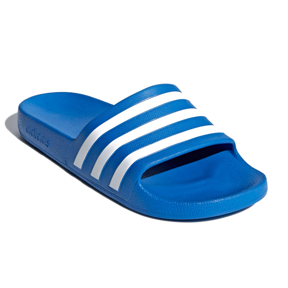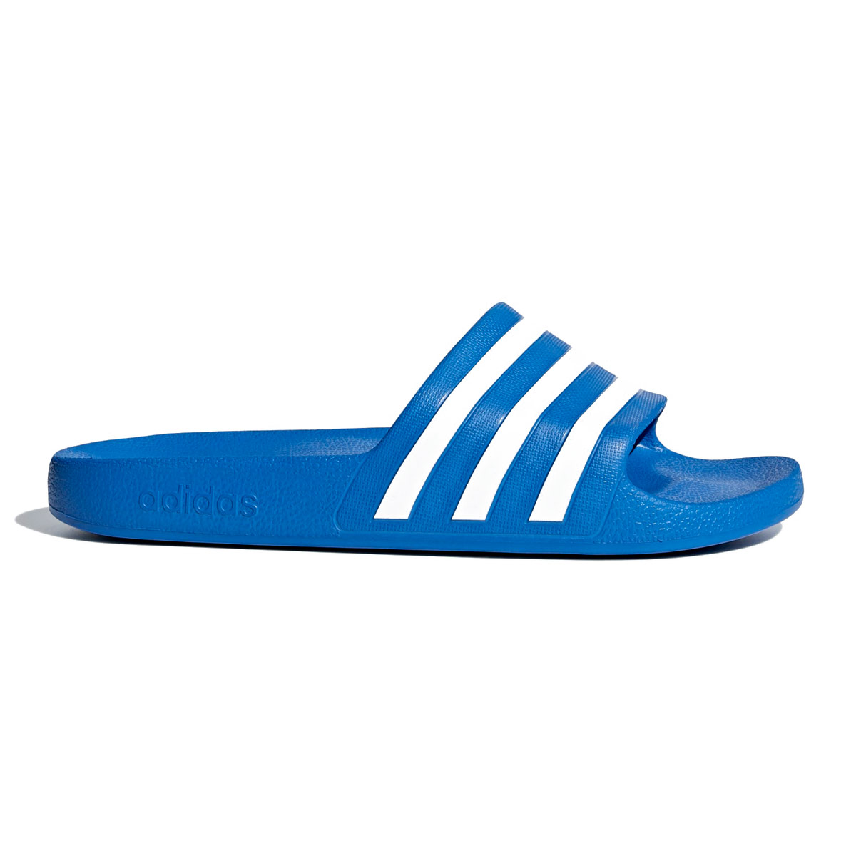 The Adidas Adilette Aqua Slides in royal blue offer an iconic style for slick surfaces. These quick-drying slides flash 3-Stripes across the bandage-style upper. Plush cushioning in the footbed provides the ultimate in comfort in and out of the shower.