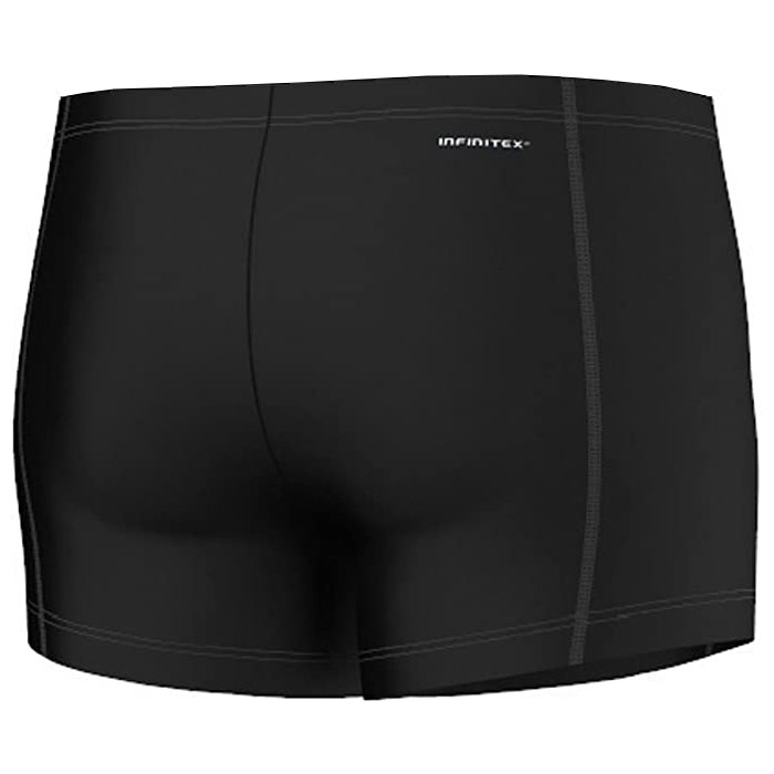 The Adidas Infinitex Essentials Swim Boxer in Black / Silver Metallic is perfect for those intensive training sessions. The black boxers are built for high-intensity training, being made from chlorine-resistant fabric.
