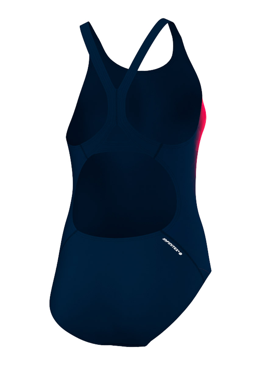 The Girls Adidas AdiClub swimsuit is perfect for those intensive training sessions. The Navy Blue / Pink and Red coloured swimsuit is built for high-intensity training, being made from chlorine-resistant fabric.