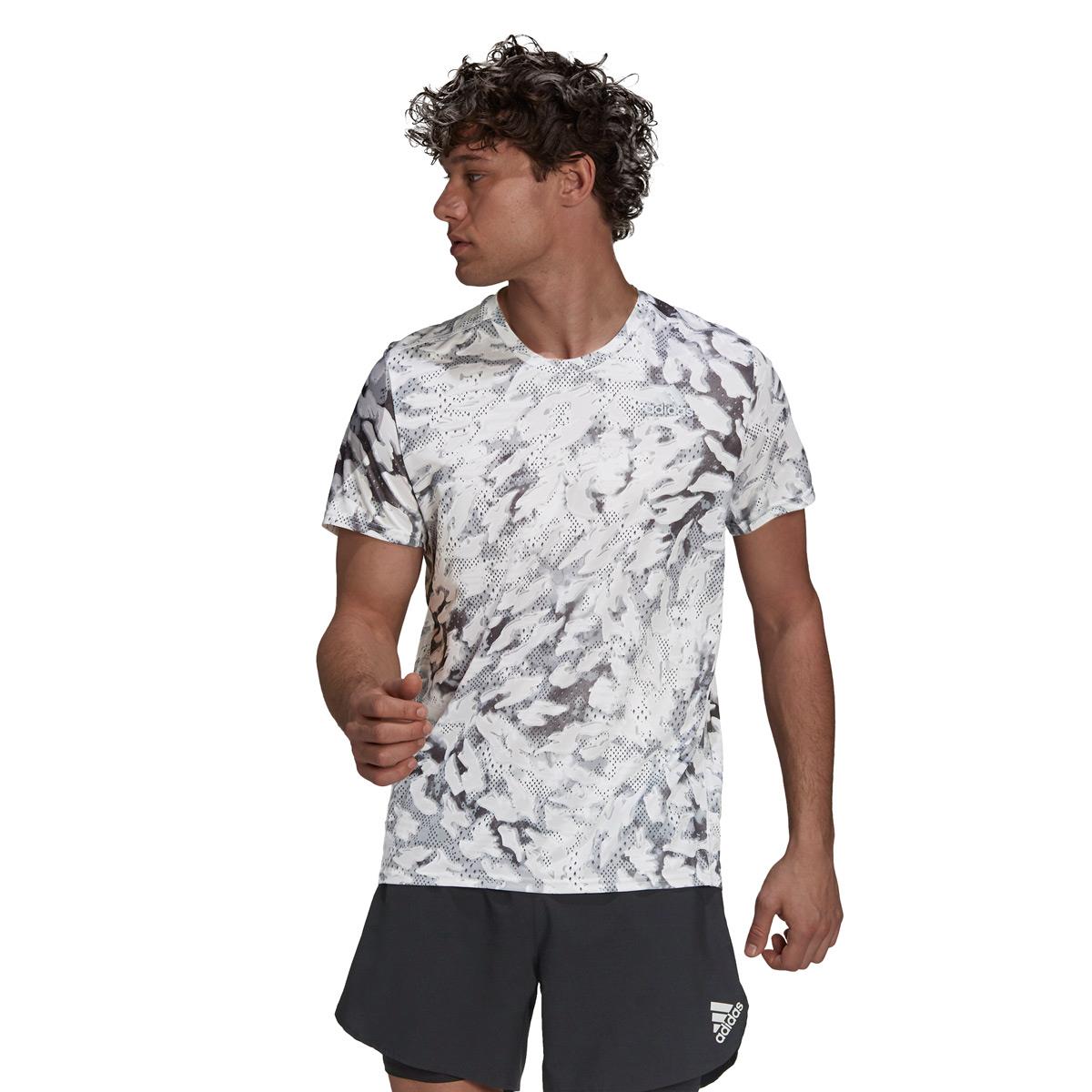 Adidas Men’s Fast All Over Print T-Shirt – Grey/ White