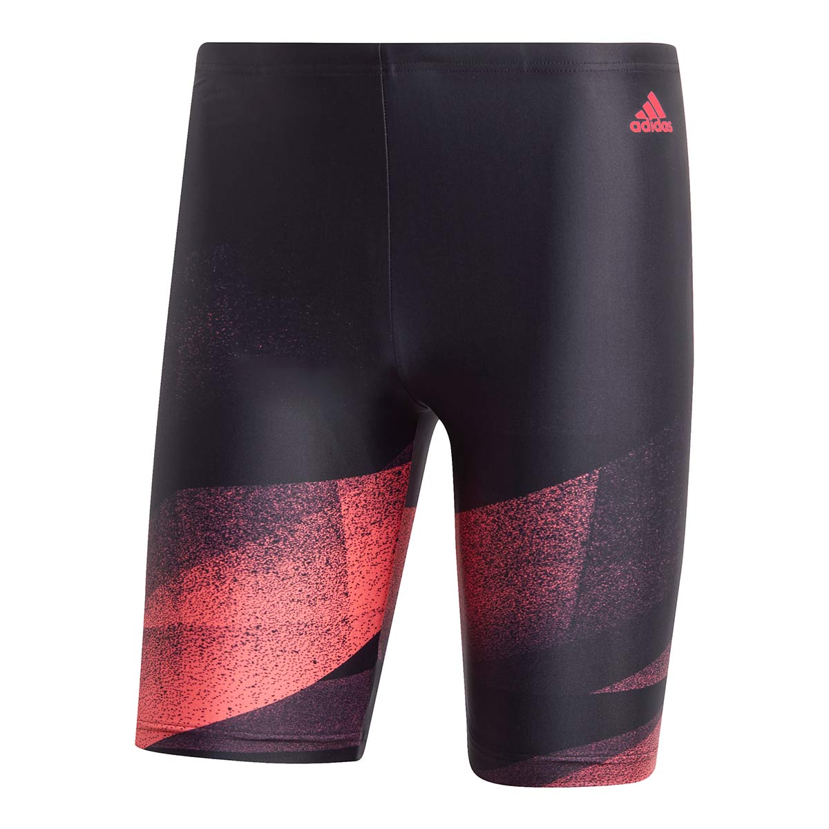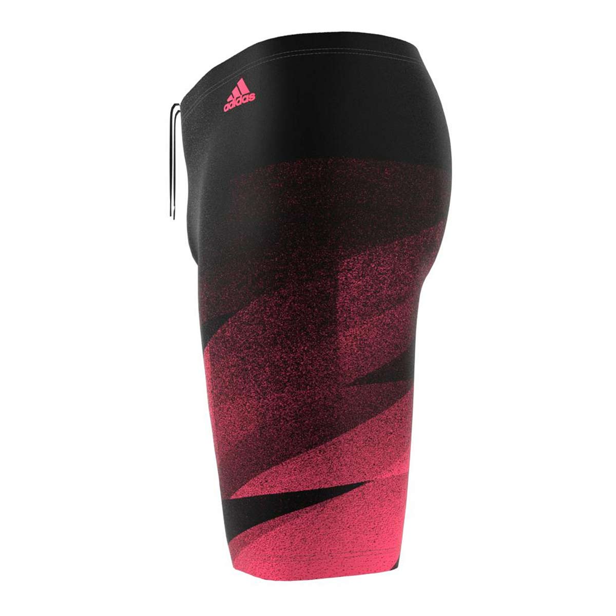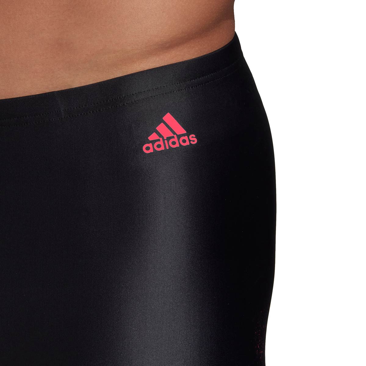 The Adidas Mens Tokyo Jammer in black and pink is made of INFINITEX® FITNESS ECO: a chlorine resistant recycled fabric that is ultra flat and soft.