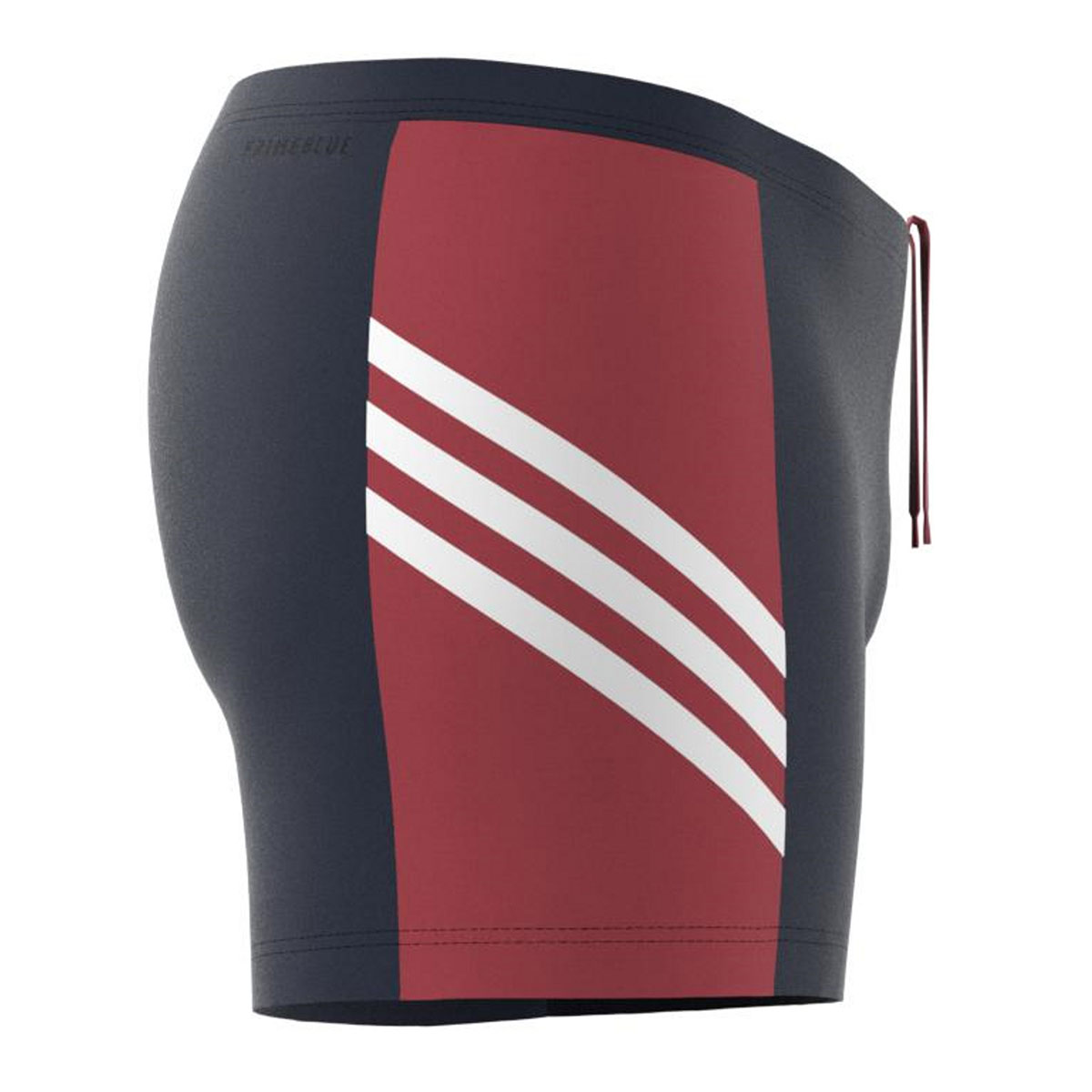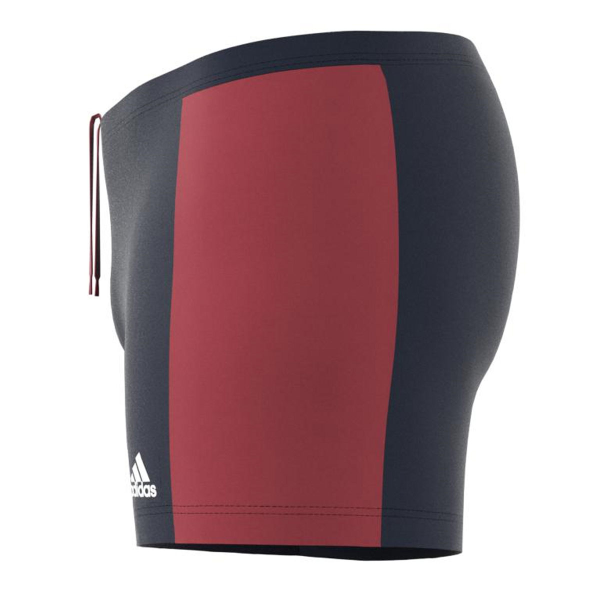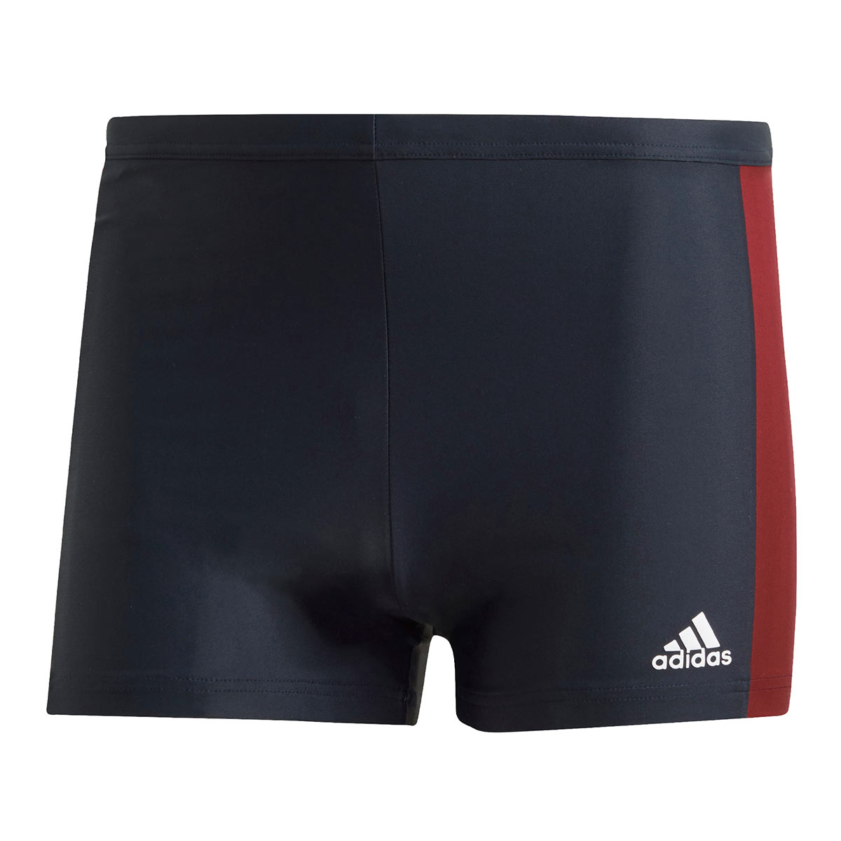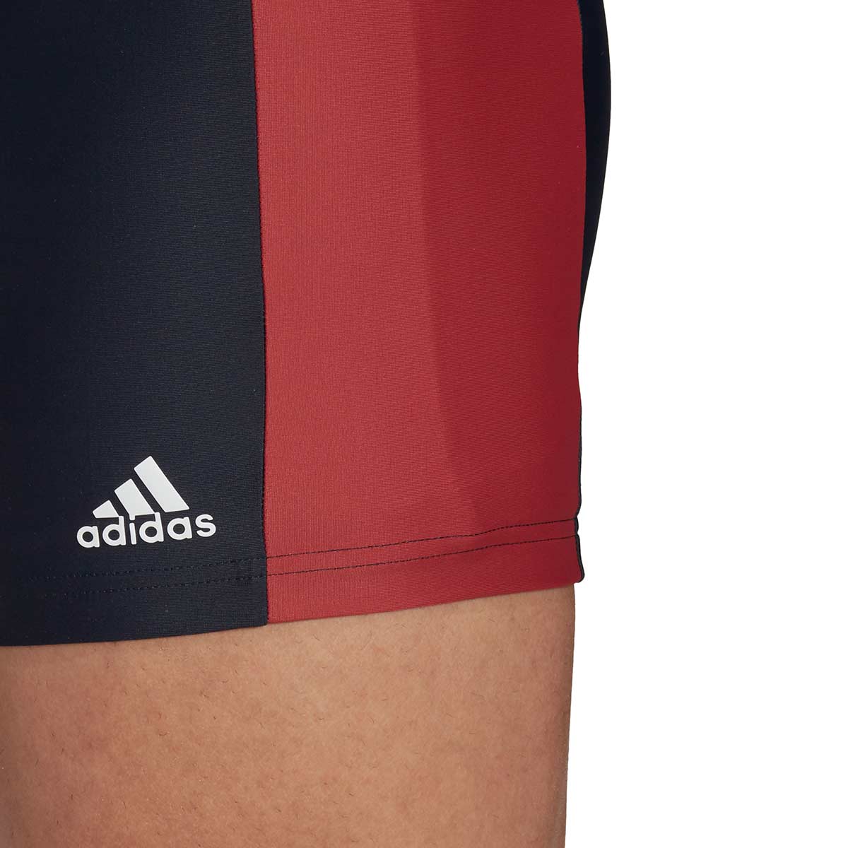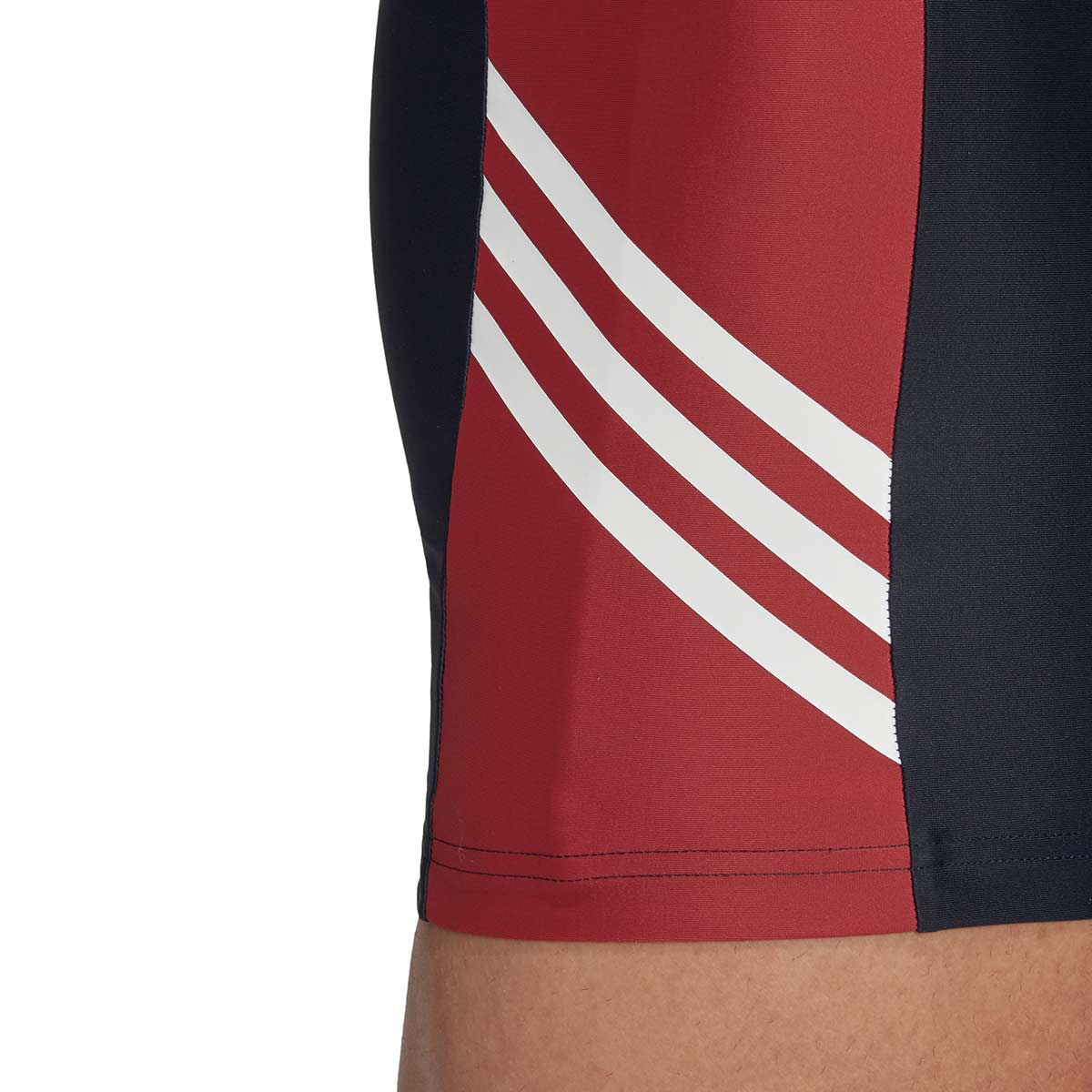The Adidas Three Second Swim Boxer in black and red is made of INFINITEX® FITNESS ECO: a chlorine resistant recycled fabric that is ultra flat and soft.