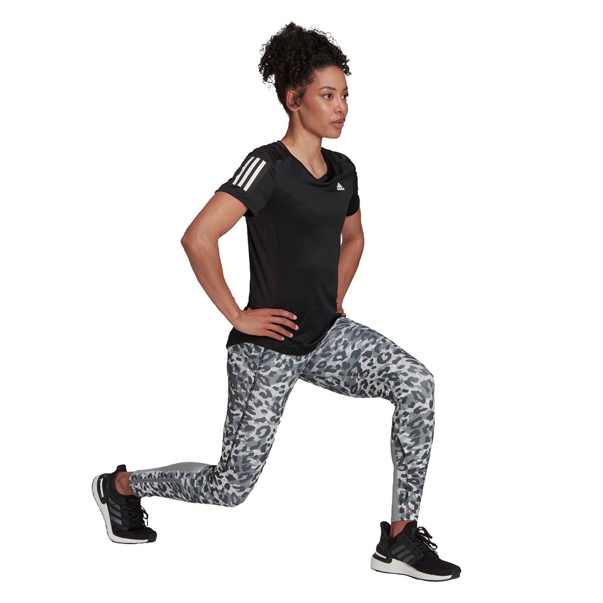 Look fast. Run fast. Wear these adidas cheetah-print running tights for speed workouts or race day. Supportive and comfortable, they cut distractions as you push the pace. AEROREADY wicks moisture, and mesh panels offer ventilation. This product is made with Primeblue, a high-performance recycled material made in part with Parley Ocean Plastic.