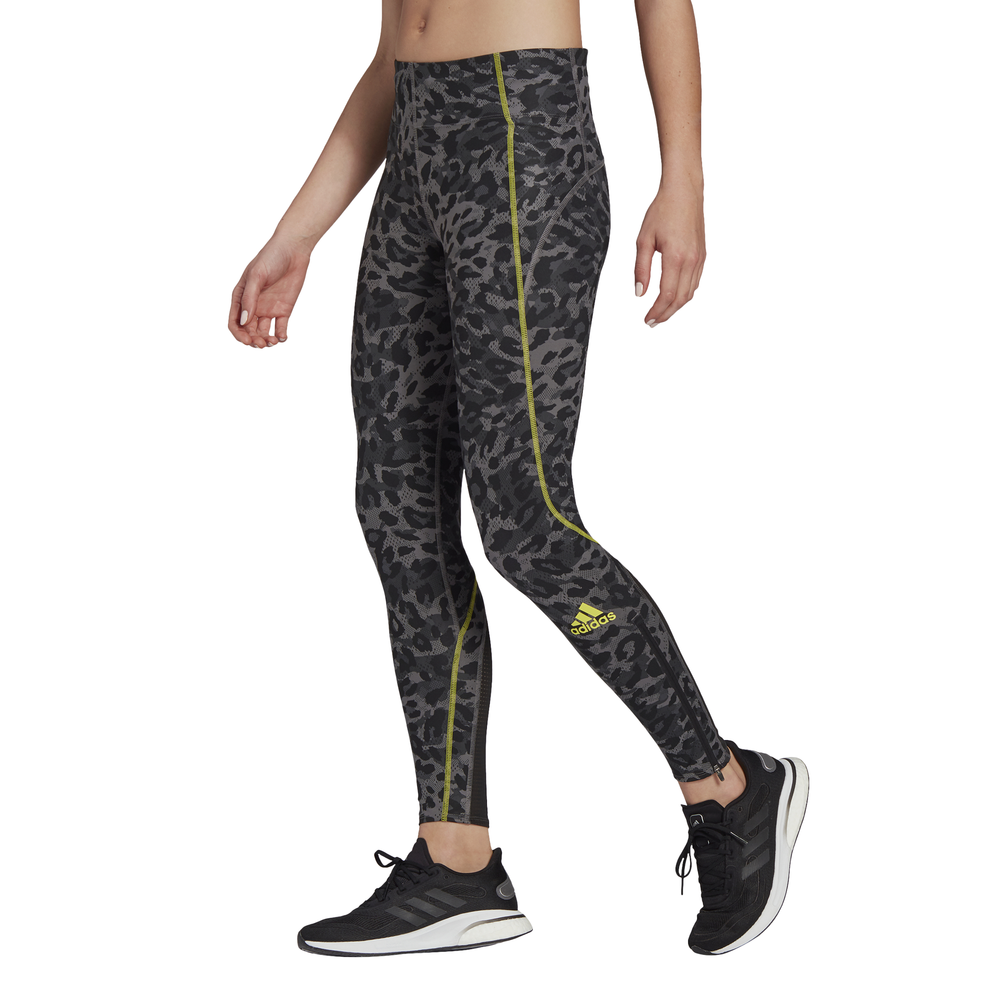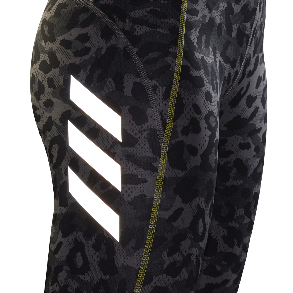 Leopard spots look better when they blur past everyone at high speed. Wear these adidas breathable tights for daily running or races. They have 360 reflectivity that shines from dusk to dawn. Moisture-absorbing AEROREADY keeps you dry. And a sweat-guard pocket keeps your phone close. This product is made with Primeblue, a high-performance recycled material made in part with Parley Ocean Plastic.