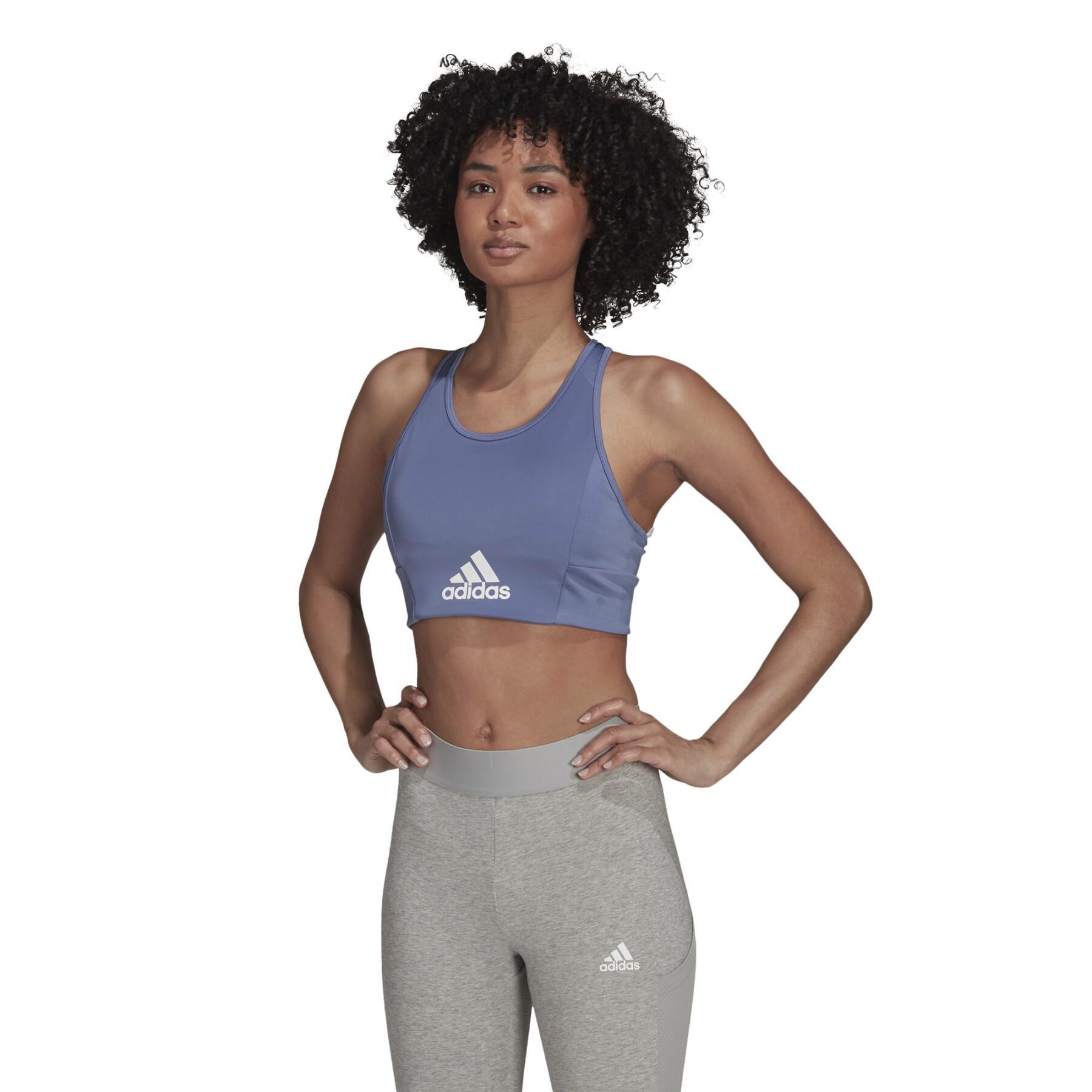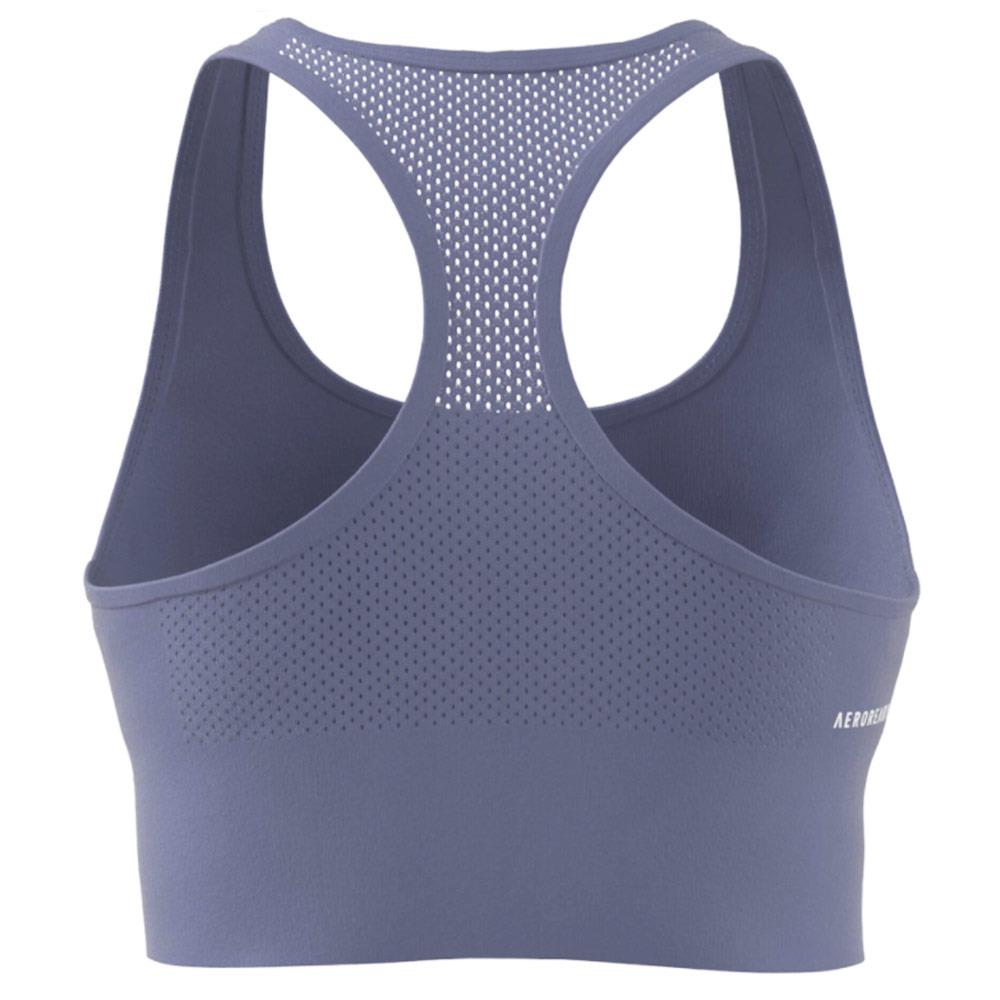 Removable pads allow you to adjust the size of this lightweight sports bra. The mesh back keeps you cool during exercise. This product is made with Primegreen, a series of high performance recycled materials. It is also made from recycled materials as part of our fight against plastic waste.