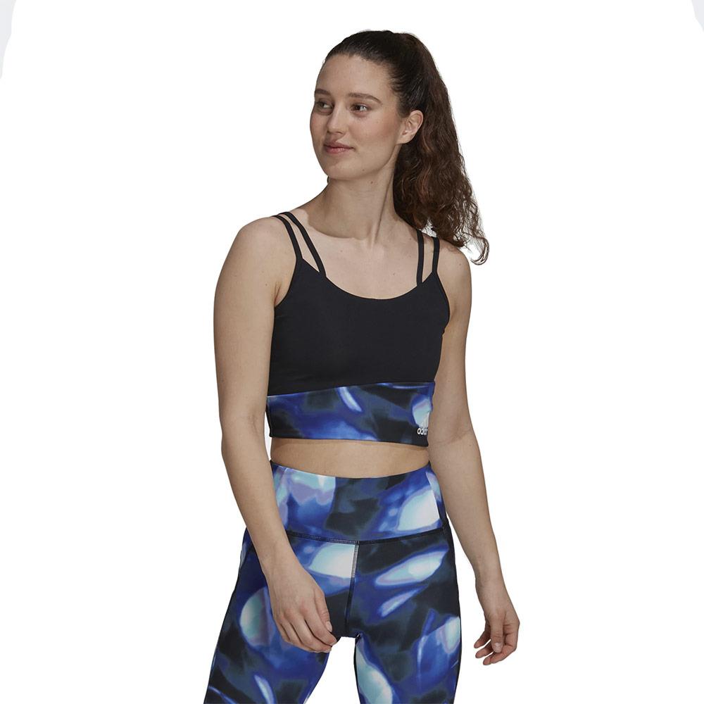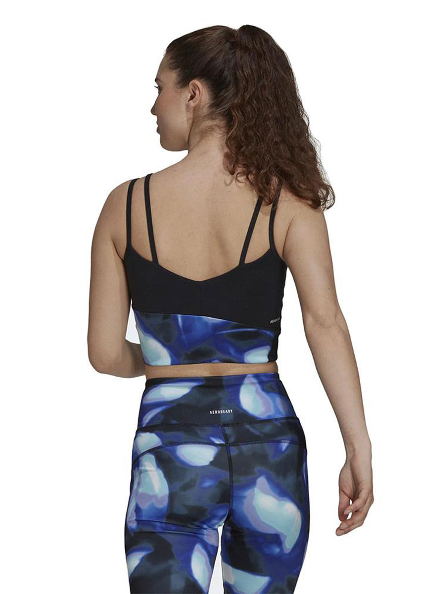 Start crushing goals in daily-wear style with this adidas bra top. Move confidently through your workout with a comfortably snug fit and just the right amount of support. Then take on the rest of your day feeling fresh and dry, thanks to moisture-absorbing AEROREADY. Layer it under your favourite tee for extra coverage, or let the curved graphic print make a style statement on its own.