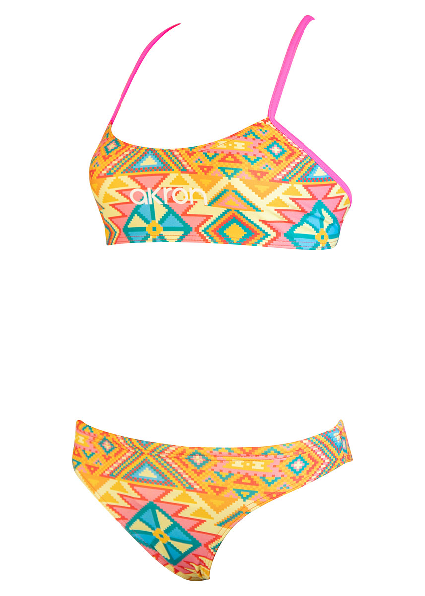 Comfortable and extremely durable, this girl’s swim bikini is a perfect option for swim training or regular pool use. It features a new Mandy pattern which is one of Akron’s newest colourful designs.