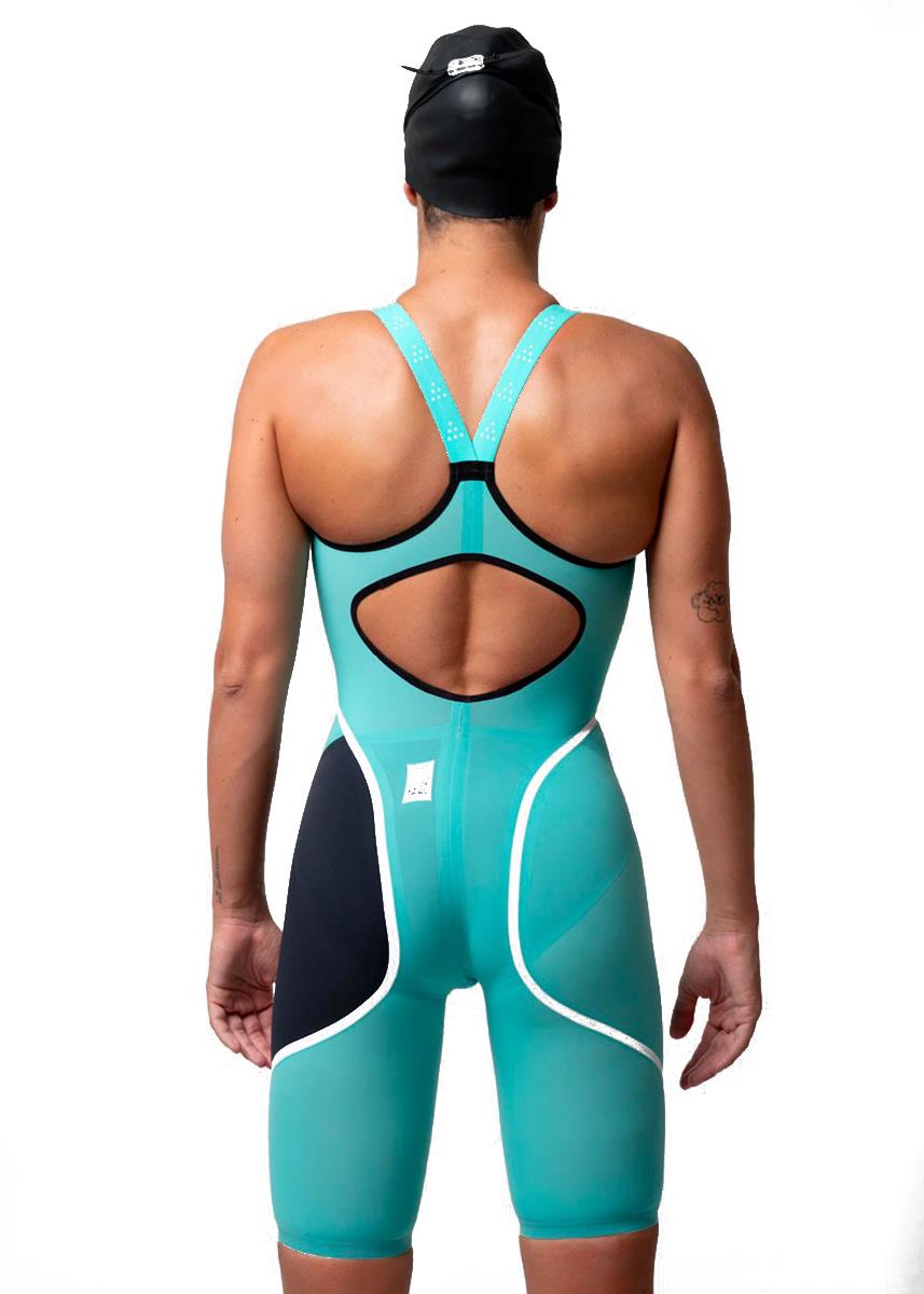 Akron Venom Hero Womens Openback Kneesuit – Tiffany / Dark Blue