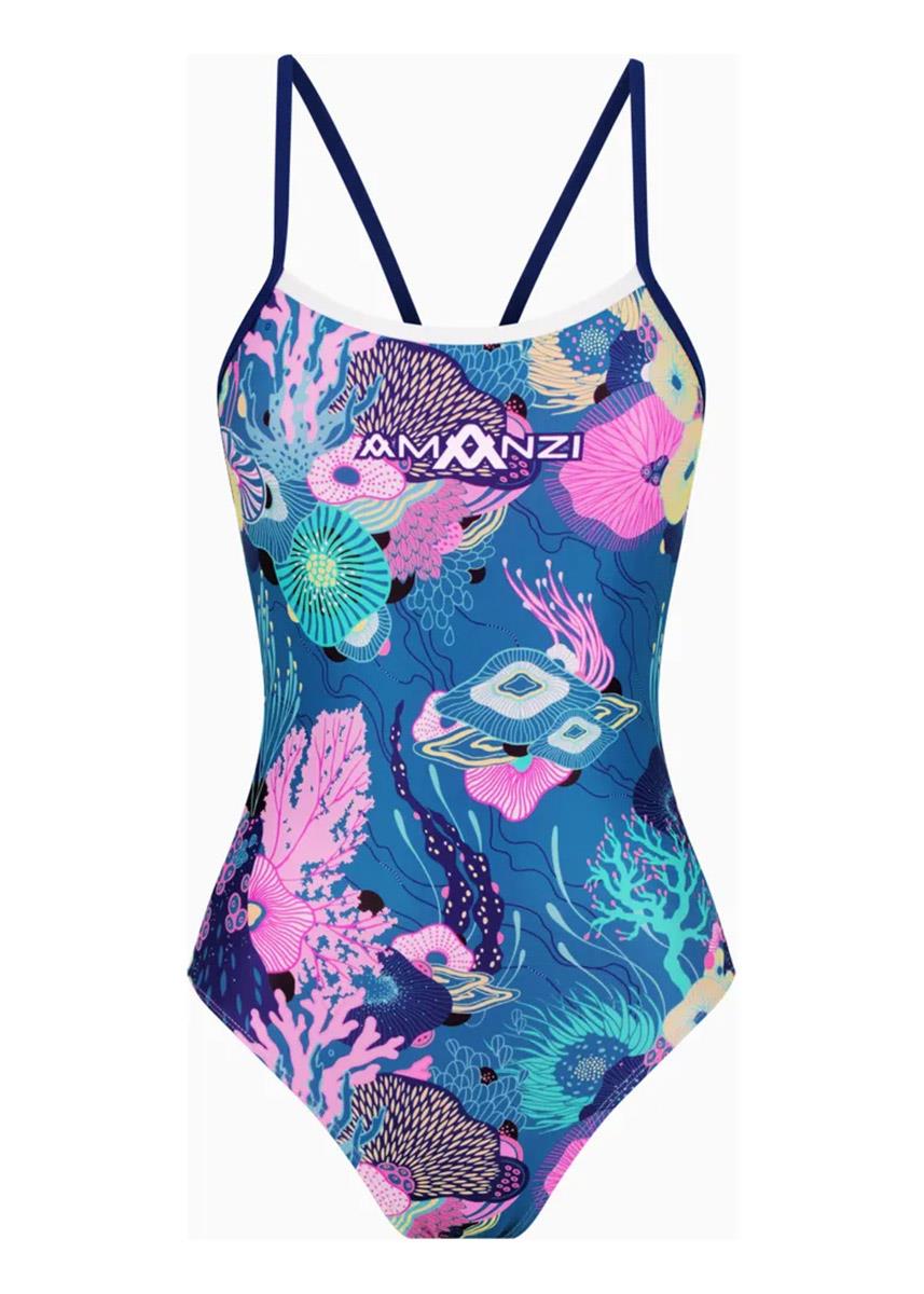 The colourful Coral Grove swimsuit from AMANZI features an eye-catching underwater inspired print that will be sure to attract interest from your training partners.