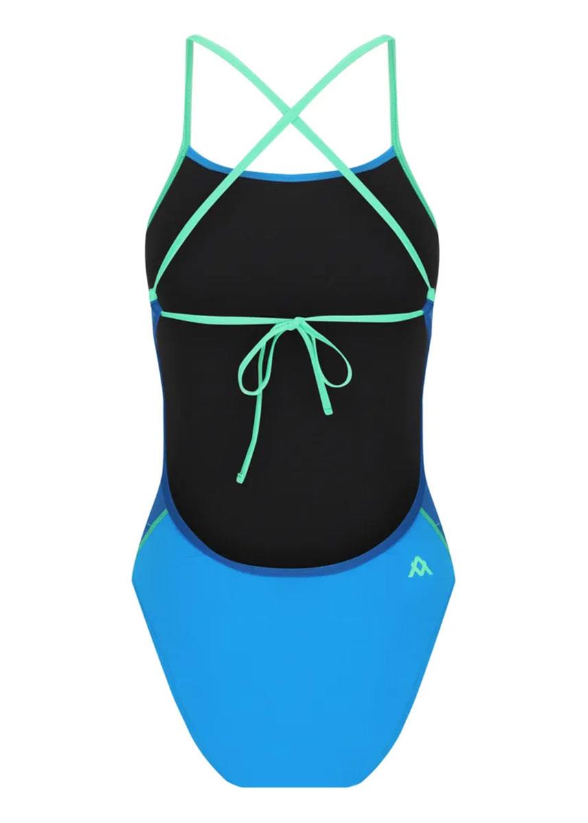 The Amanzi Seaglass Tie Back One Piece Swimsuit in Yellow is a versatile training swimsuit that combines functionality with a fashionable edge.