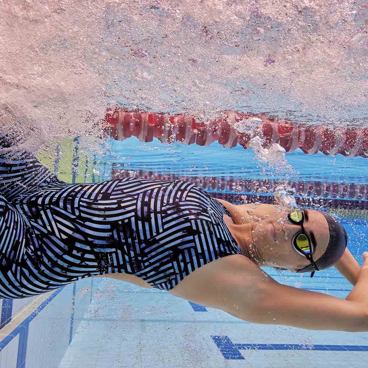 The wide shoulder straps and back band are placed between the shoulder blades, allowing for maximum freedom and ease of movement whilst swimming. They also provide added bust support. The wide-open back follows the natural contour of the body, providing an ergonomic fit and superior comfort.
