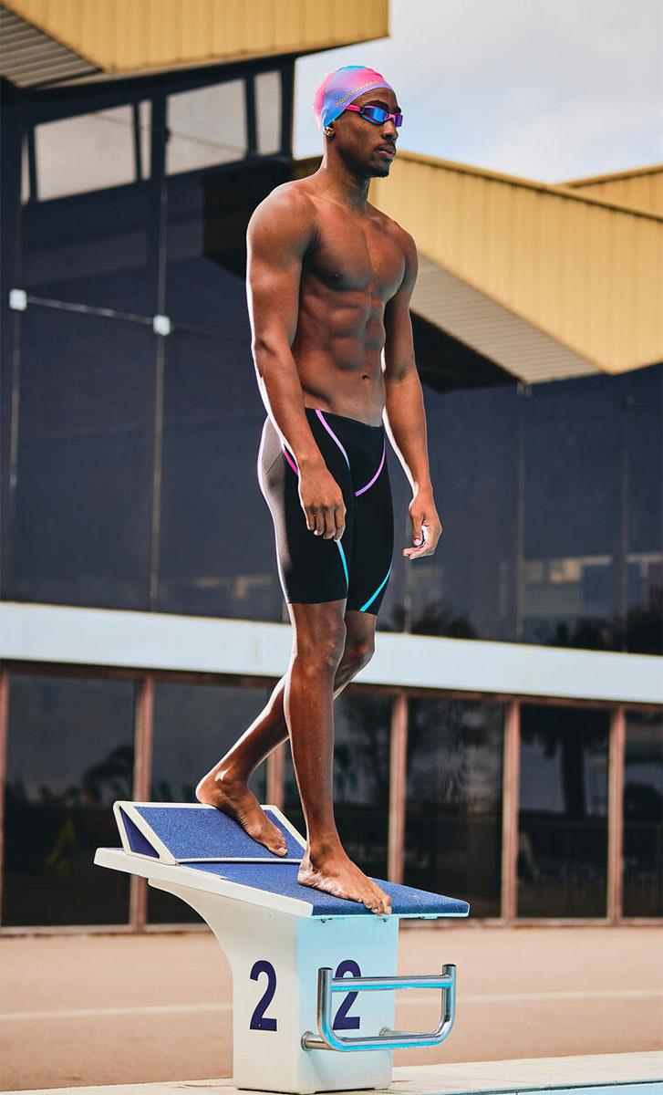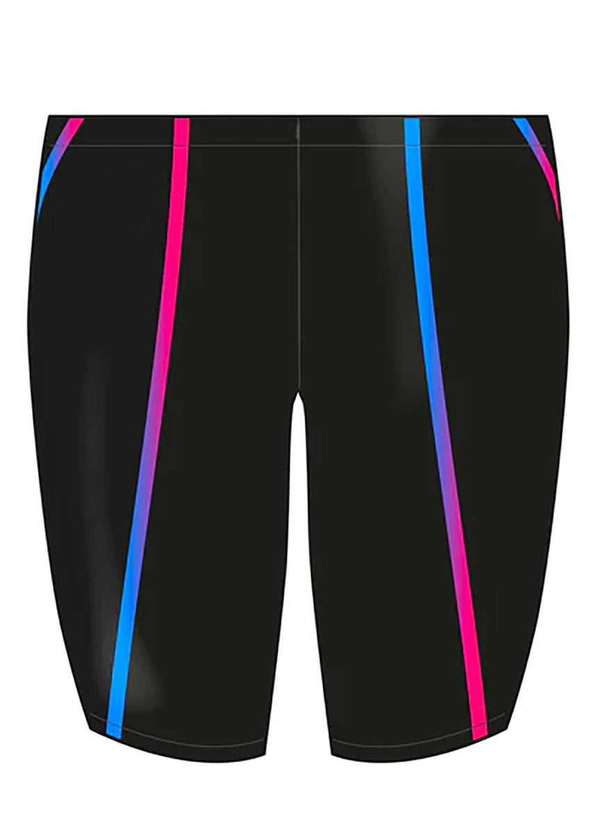 Stand out in any aquatic setting with the Jammer’s stunning multi-coloured pattern on black. The vibrant splash of colours makes for an attention-grabbing look, sure to make waves in both training and competition scenarios.