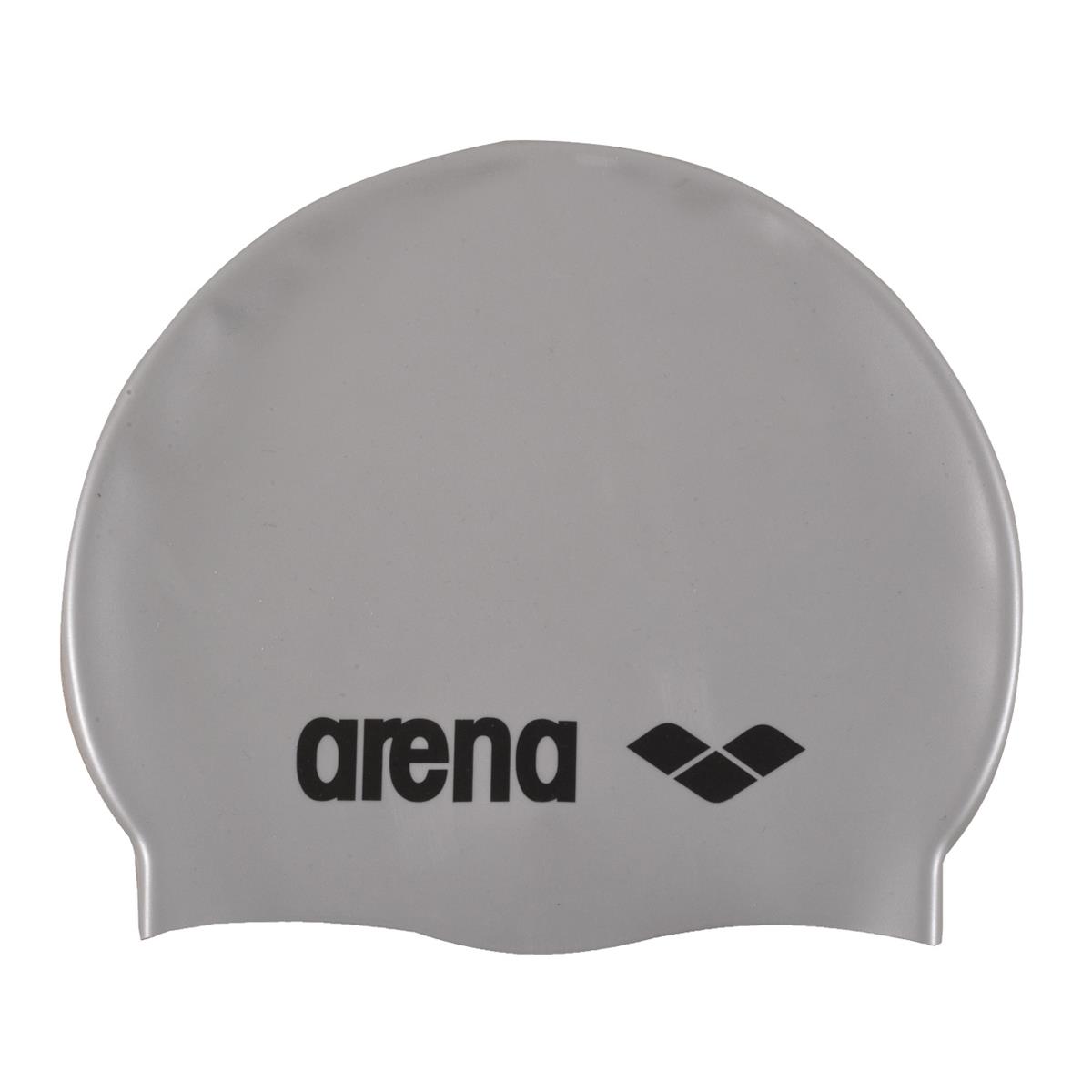 Arena Classic Silicone Swim Cap in Silver with Black logo is an essential piece of swim gear!