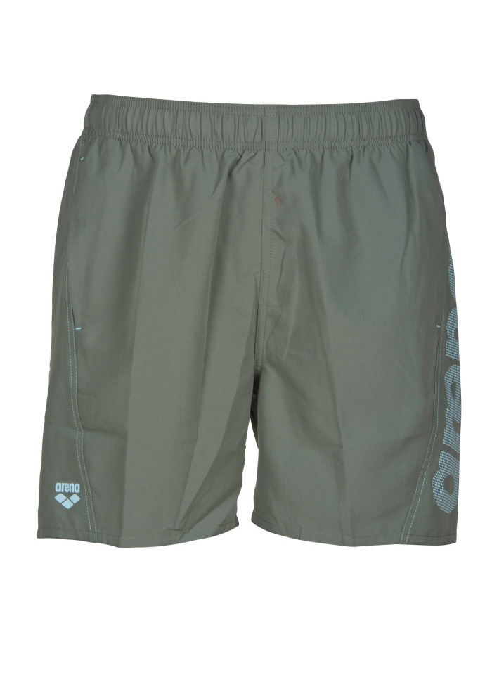 The new Arena Fundamentals Logo boxer is the new arrival of Arena’s beachwear, with the army green colour and the arena logo in sea blue along the one leg, these boxers are perfect for any day at the beach. Cut for ease of movement, these flat-front boxers measure 41.5 cm and fall just above the knee. This swimsuit is also made for 1005 comfort with the inner brief lining.