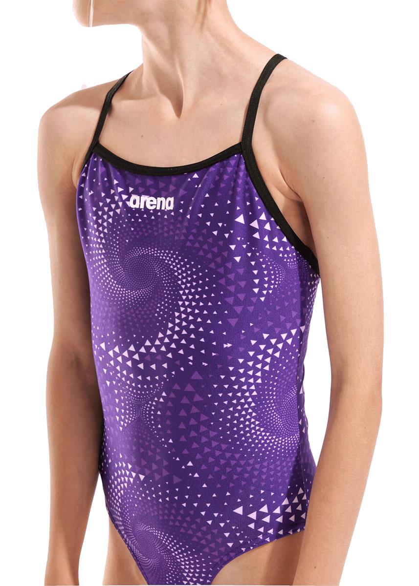 Arena Girl’s Fireflow Light Dropback Swimsuit – Black / Team Purple