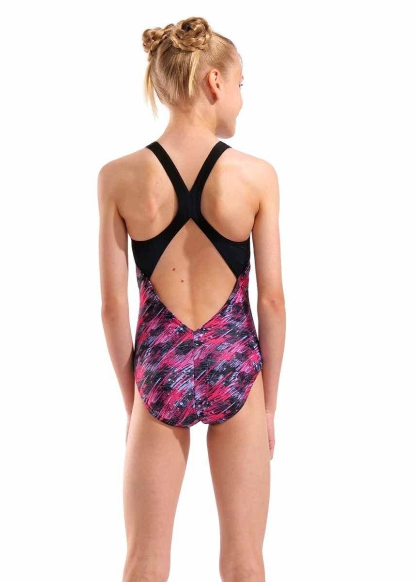 Arena Girls Draft V-Back Swimsuit – Black / Multi