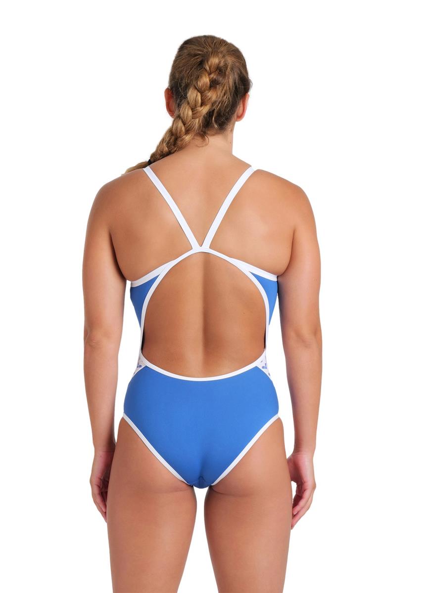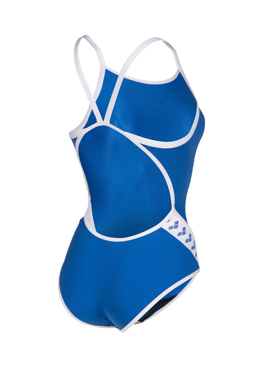 Arena women’s Icons swimsuit in a solid royal blue and white colour is the ideal swimsuit for intense training days and regular pool use.