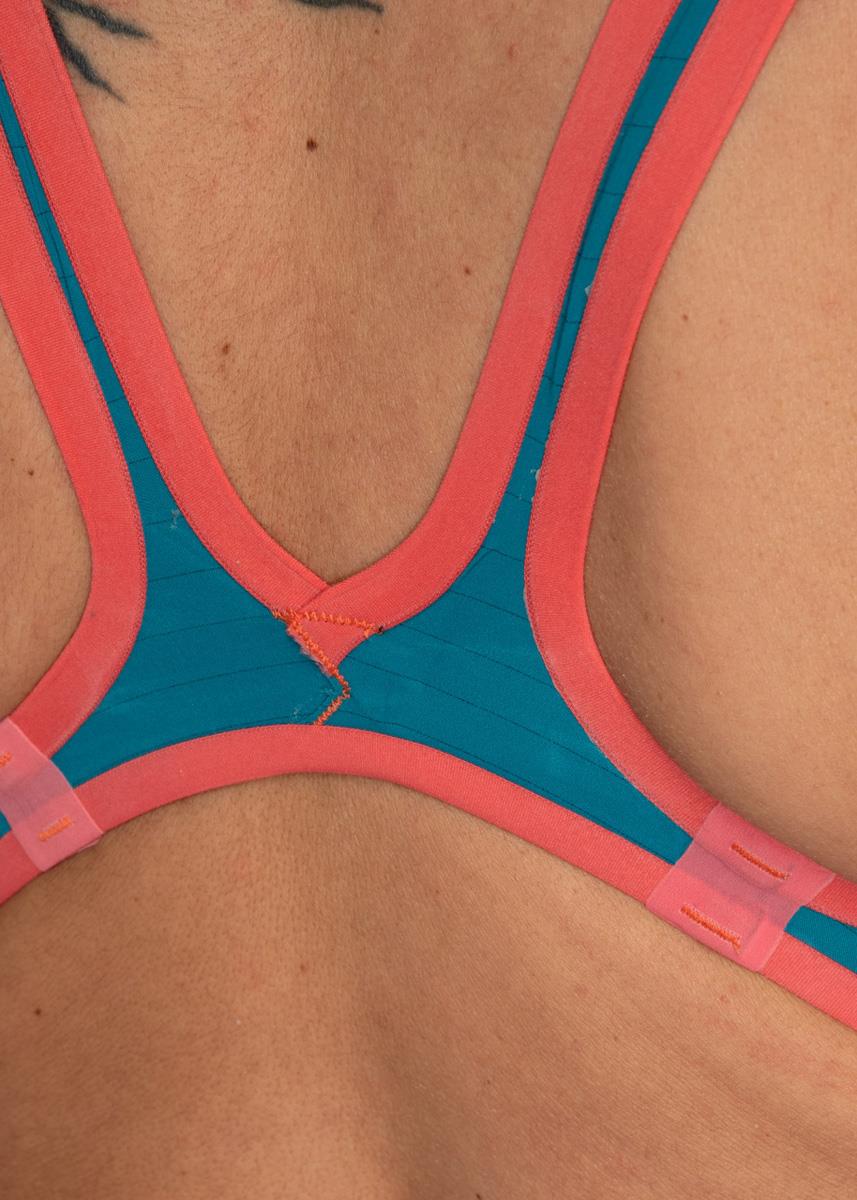 The 3 separate panels give greater freedom of movement. In the Carbon Air² kneeskin, this results in less compression across the chest, which liberates breathing and allows the swimmer to move more freely - One Piece Construction