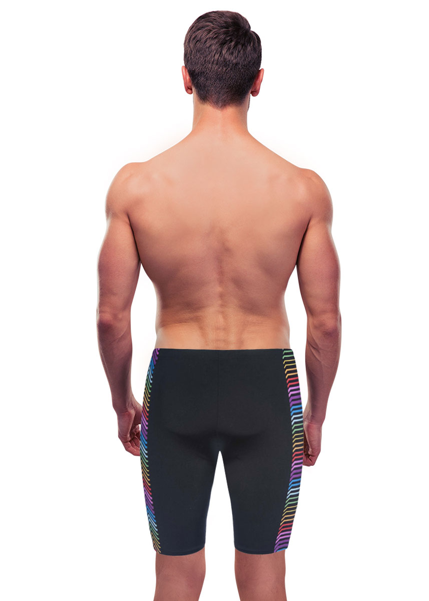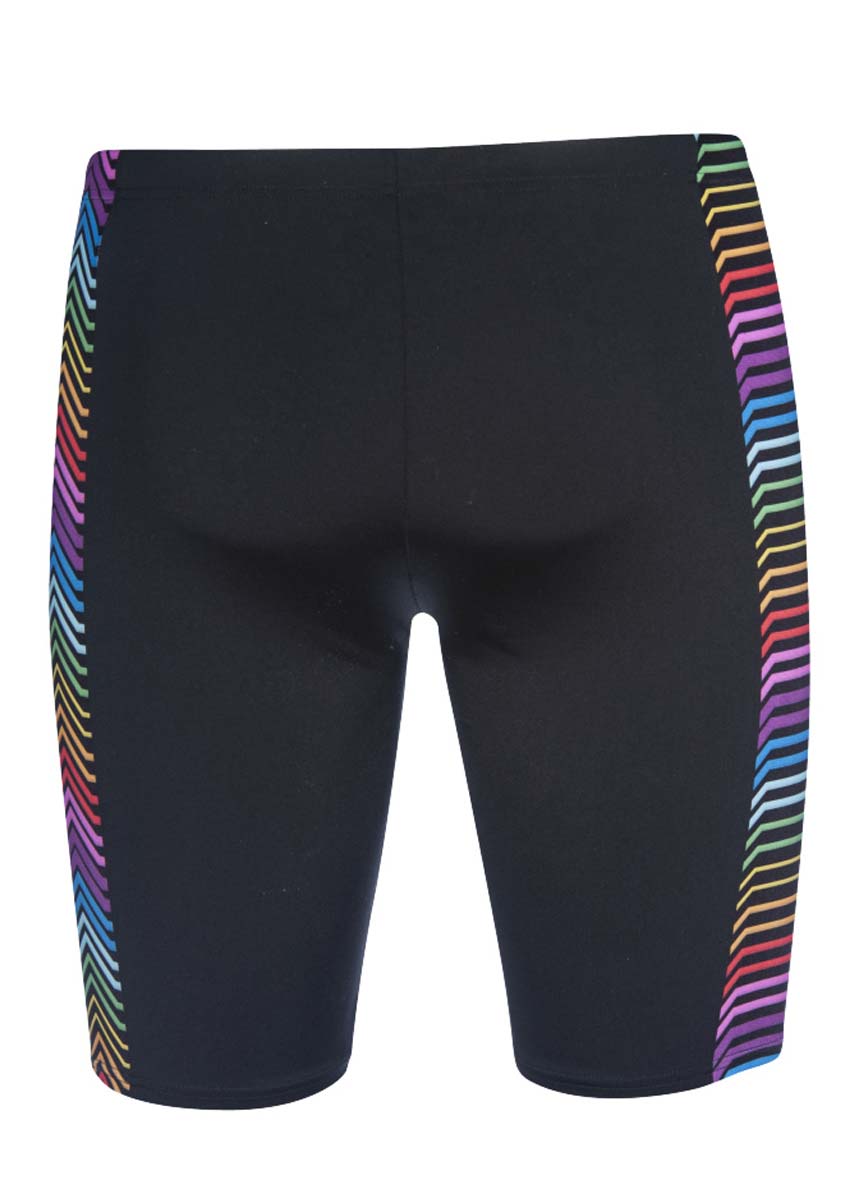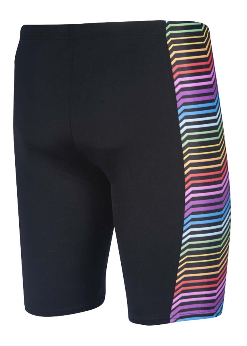The new mens Multicolour Stripes Jammer is the ideal swimsuit for those intense training days. The black and multicoloured striped Jammers are designed with a 45cm leg and internal front lining, these shorts provide exceptional comfort and freedom of movement when you need it most, during an intense training session.