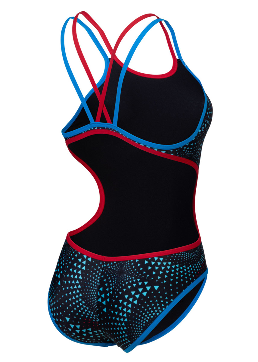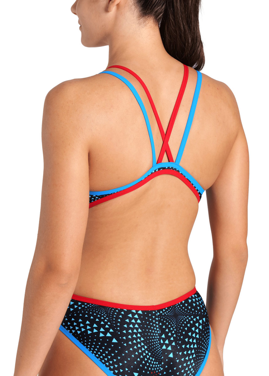 Decorated with the collection’s unique print, the Arena Fireflow Double Cross Back Swimsuit is a captivating one-piece for training and frequent swimming.