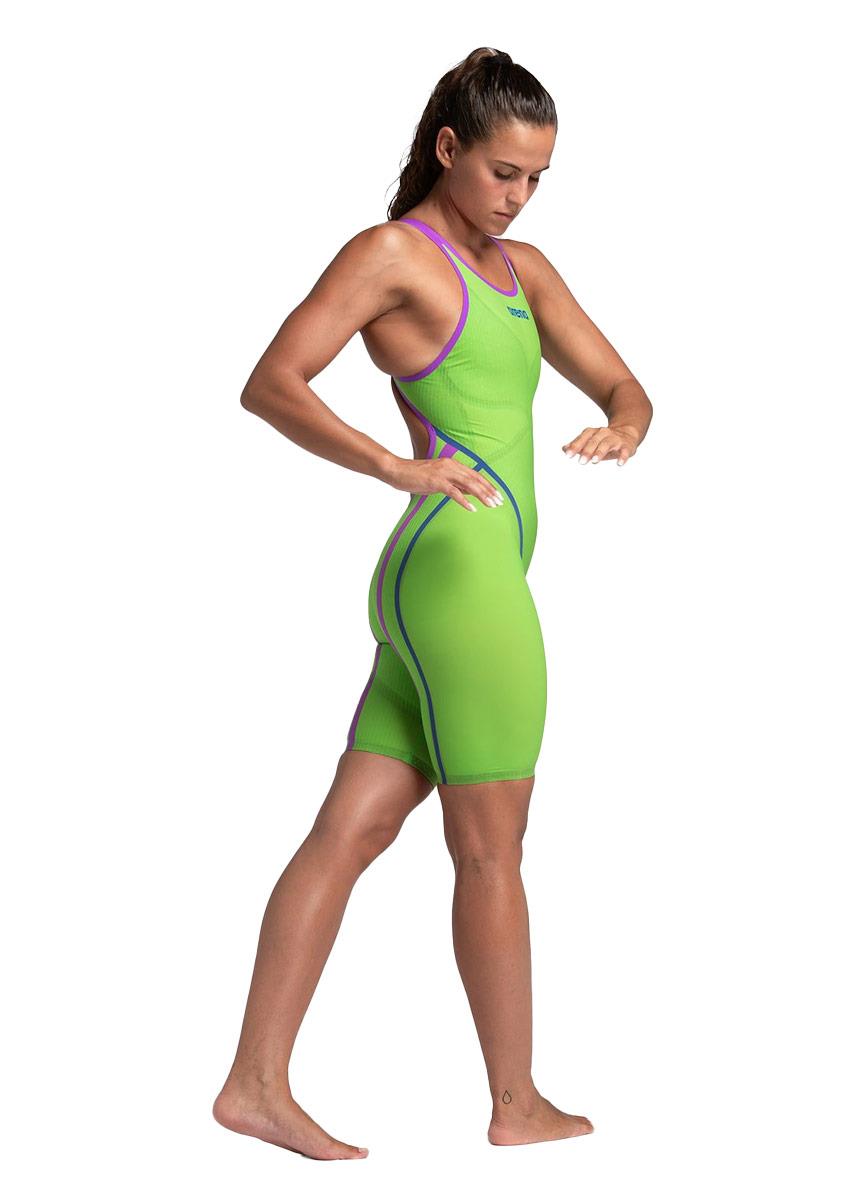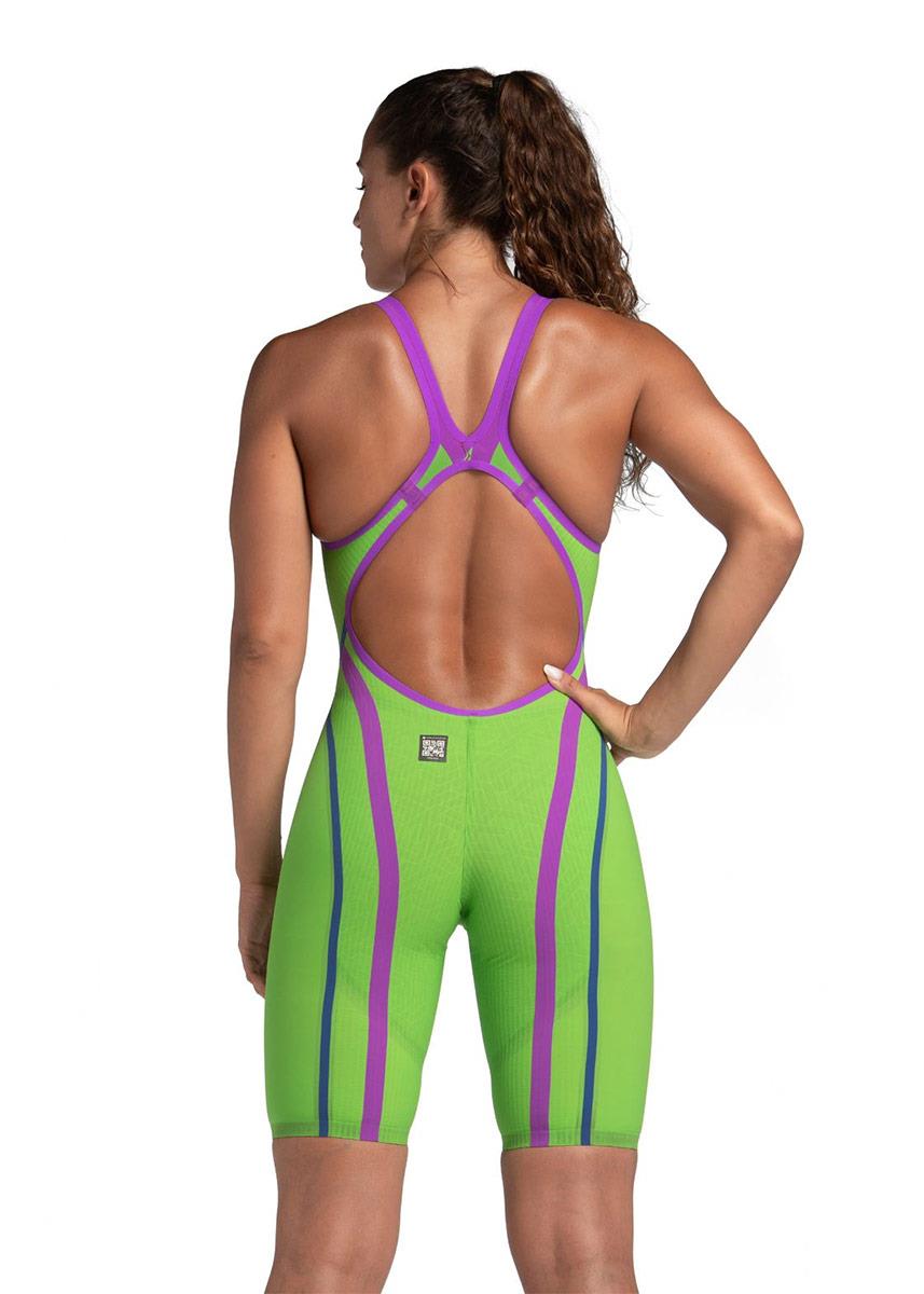 Discover the ultimate combination of compression and flexibility with this new colourful Arena Powerskin Primo women’s openback kneesuit, the world’s first tensoelastic racing suit.