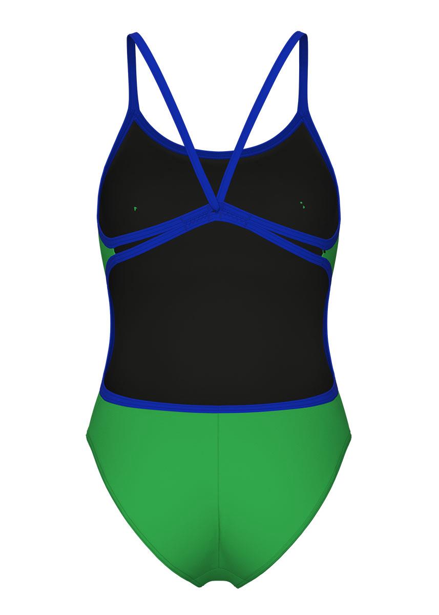 Brimming with confidence, this swimsuit boasts a one-of-a-kind lace back design that seamlessly fuses elegance and sportiness. The striking contrast between green and blue only further enhances its overall aesthetic, optimising your poolside charisma
