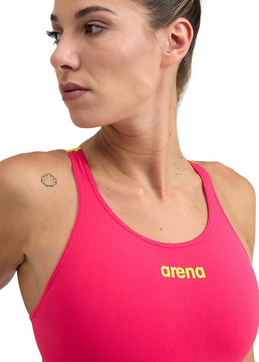 Arena’s Maxlife Eco fabric has high resistance to chlorine with long-lasting performance. This advanced swimwear fabric keeps it shape longer than other materials and fits like a second skin. Hydrodynamic in the water, quick to dry for post-swim comfort and integrated UV protection for safe swimming under the sun.