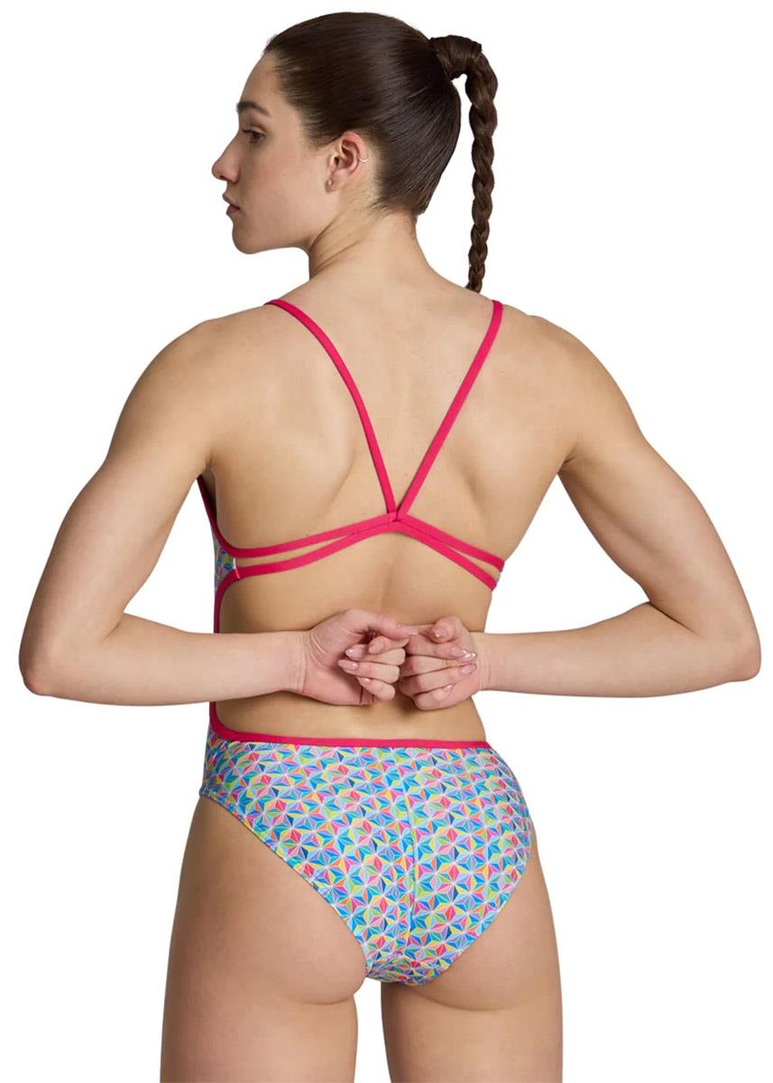 With a unique Lace back design, the Arena Starfish swimsuit features an elegant multicolour mosaic print.