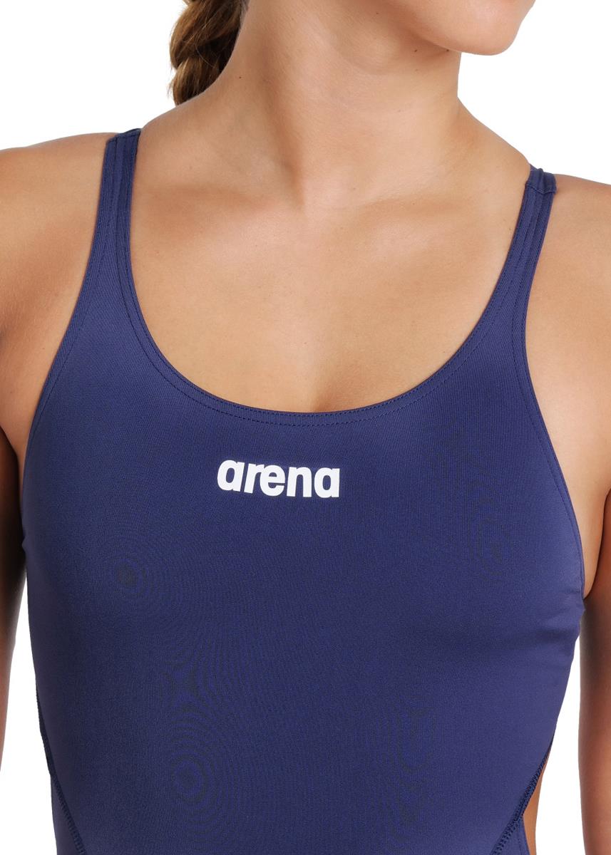 Arena Team Swim Tech Swimsuit in Navy Blue is the ideal swimsuit for intense training days and regular pool use.