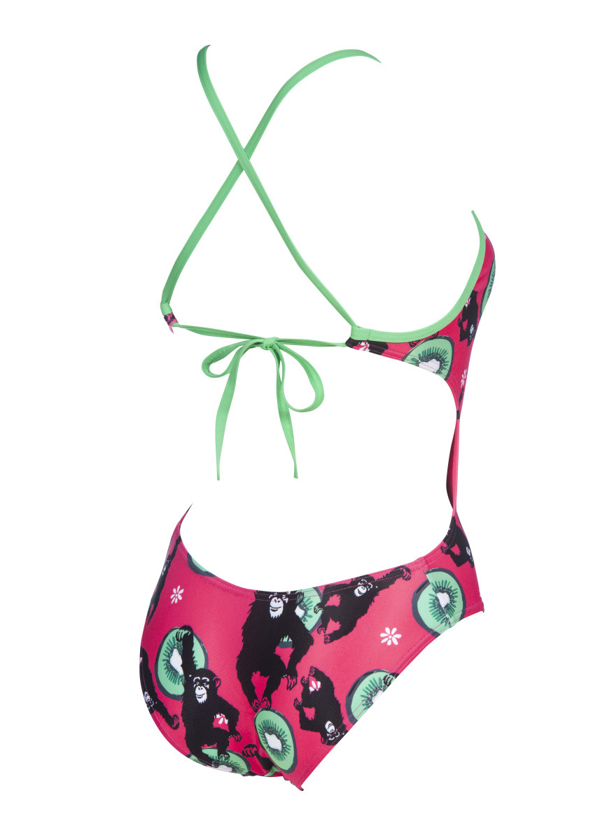 The Girl’s Crazy Monkeys Tie Back swimsuit is designed using Arena’s Maxlife 100% polyester. This material is an exclusive from Arena having 100% PE fabric that guarantees maximum resistance to chlorinated water. Max Life PBT construction is a specifically engineered PE yarn that provides excellent elasticity.
