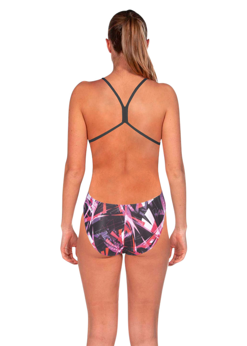 The womens Night Lights Light Tech swimsuit is designed using Arena’s Maxlife 100% polyester. This material is an exclusive from Arena having 100% PE fabric that guarantees maximum resistance to chlorinated water. Max Life PBT construction is a specifically engineered PE yarn that provides excellent elasticity.