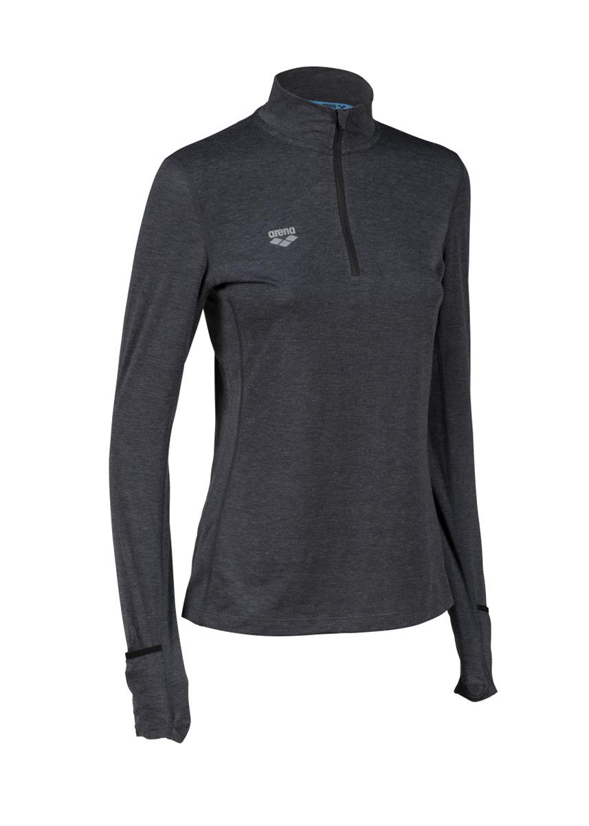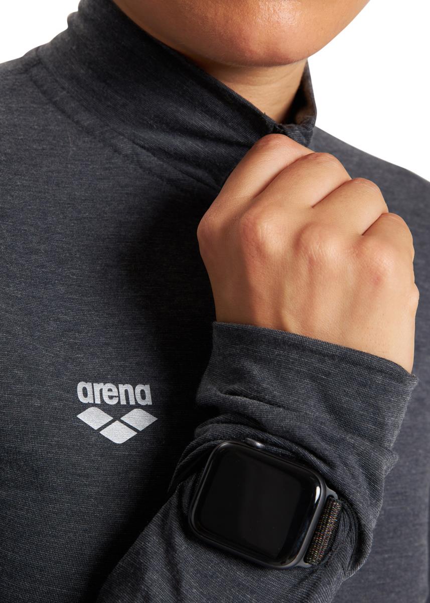 Arena’s smart textured fabric channel technology enhances wicking performace to manage moisture preventing those post-exercise chills as well as a mitten sleeve design to keep hands warm with a wrist hole for smart watches.
