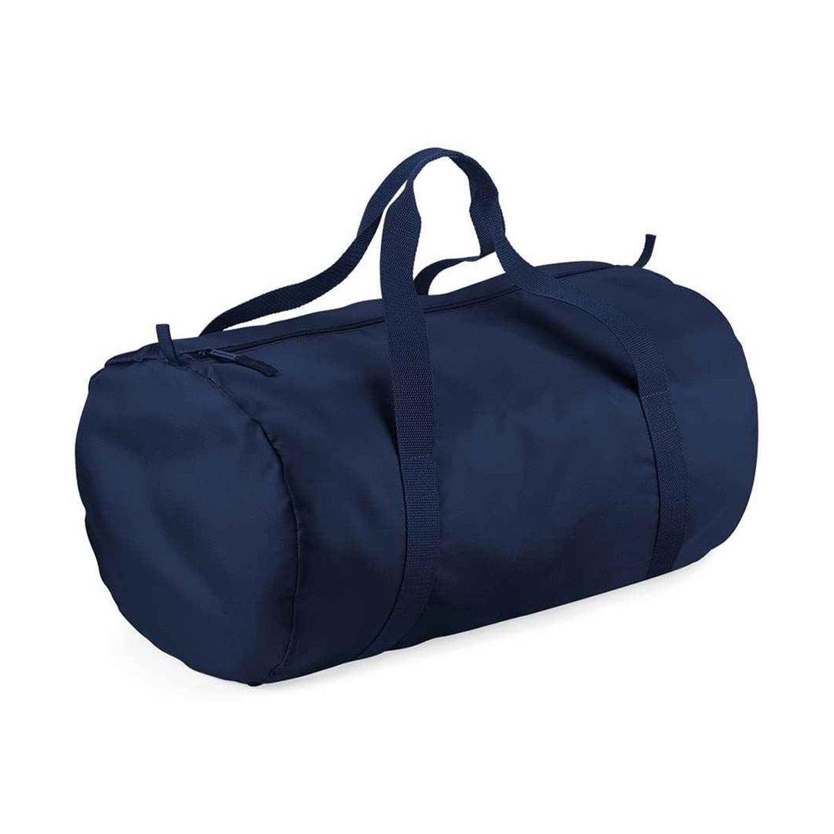 Available in a variety of colors, this French Navy BagBase Packaway Barrel Bag combines functionality with style, making it a must-have for any active lifestyle.