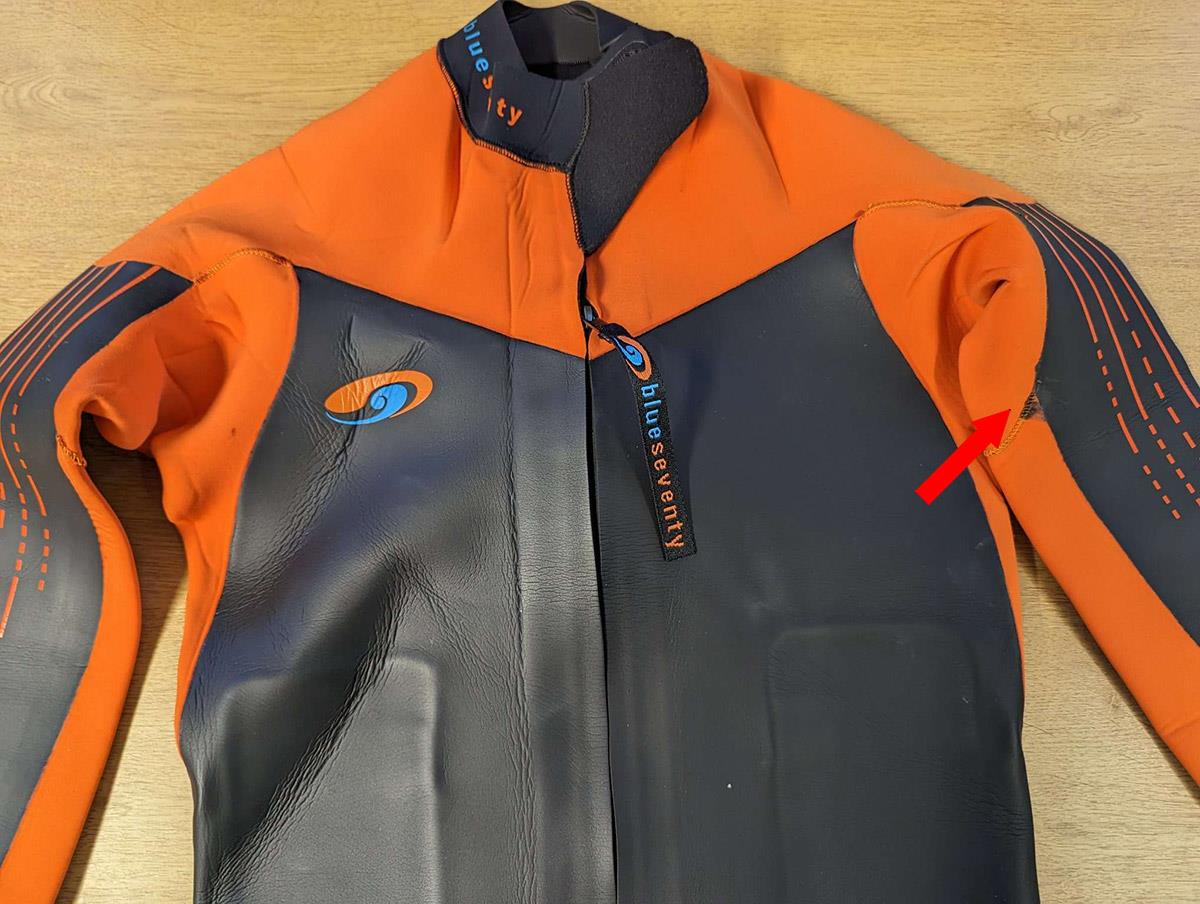 Grade B suits have not been used other than for customer sizing and any large neoprene damage will have been repaired by ProSwimwear, this suit will perform as well as a new suit and is new other than customers trying on for sizing.