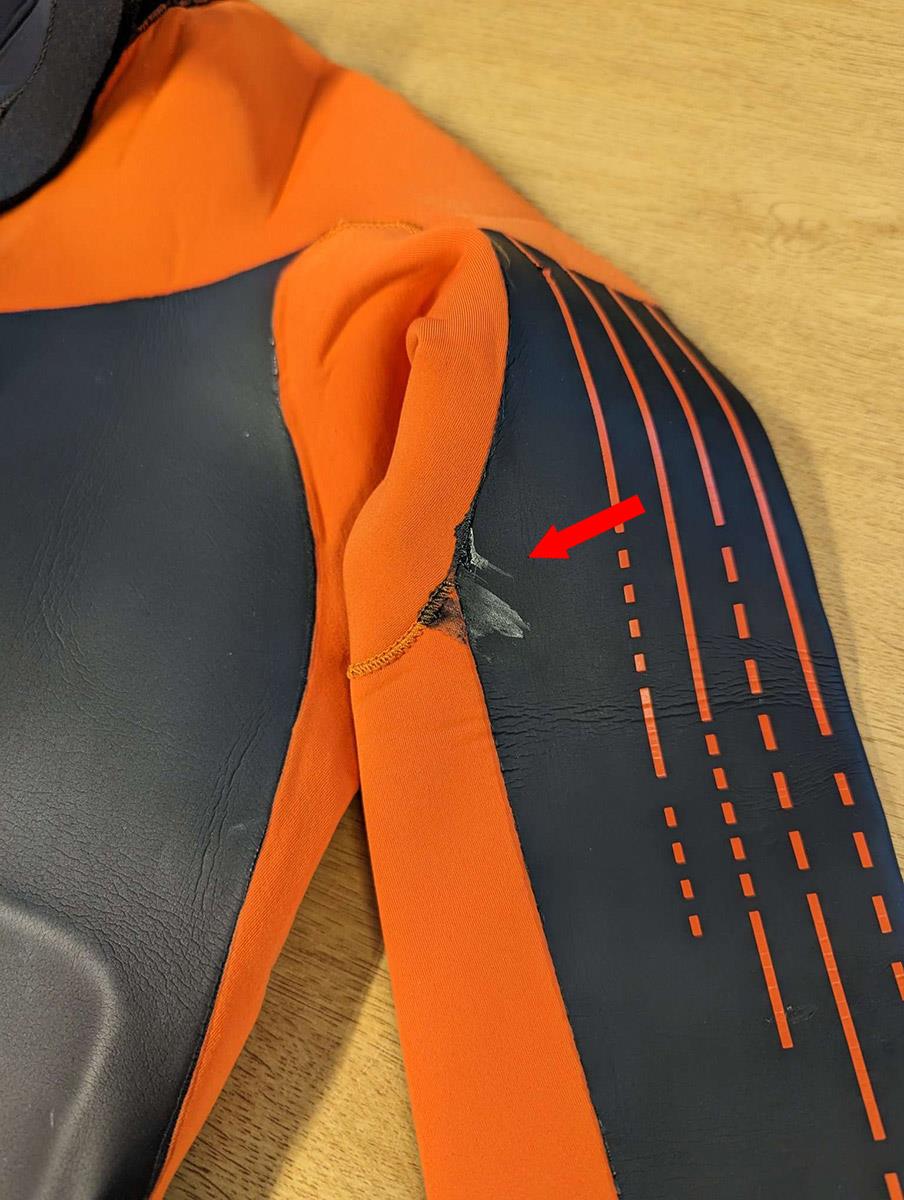 Likely to have been used for sizing, Grade B wetsuits will have the odd mark, nick or possible slight cosmetic marks/damage (e.g. fingernail marks, fading/peeling to design) Grade B wetsuits will still perform perfectly.