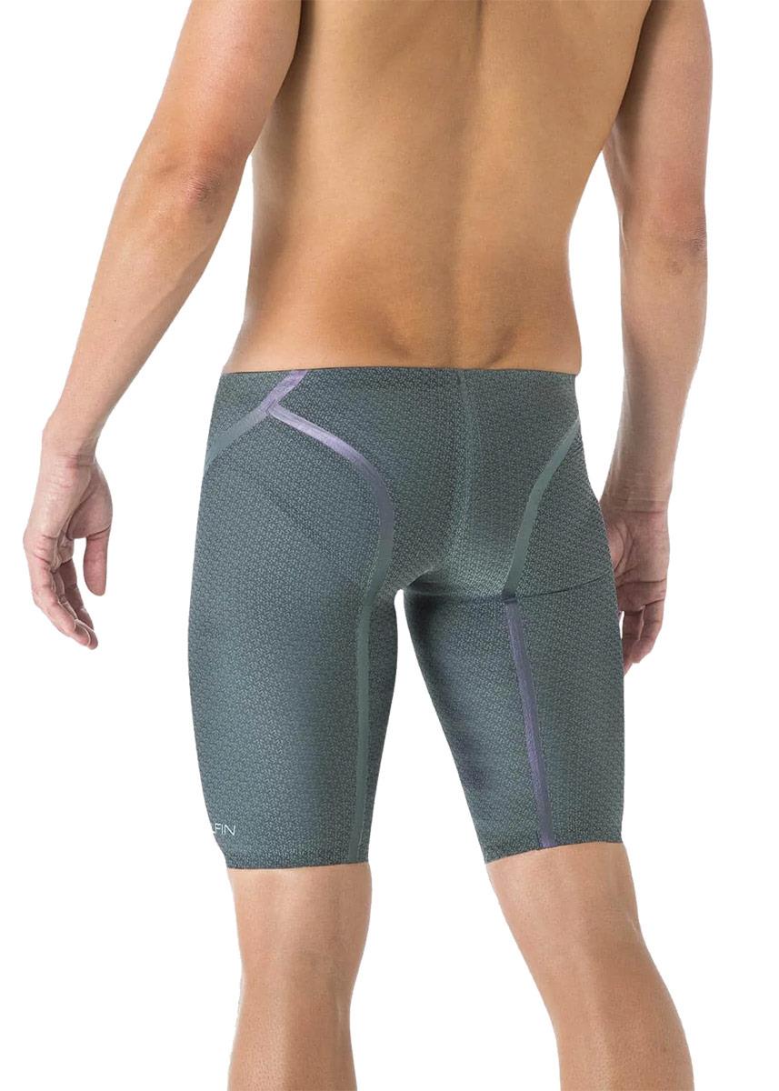 Compete in your next race with confidence in the silver print Dolfin LightStrike flex-leg jammer.