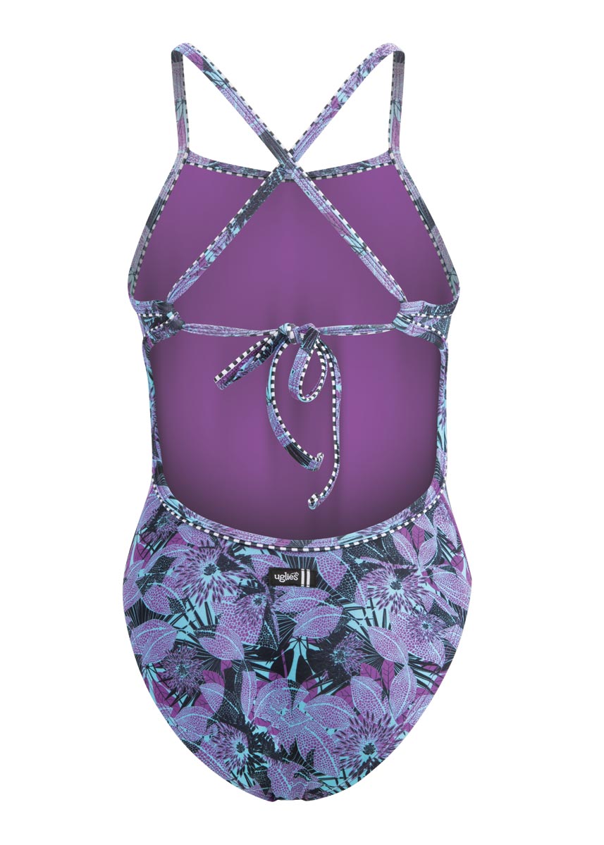 Make a splash with the Dolfin Revibe Rainforest Tie Back swimsuit, featuring a floral rainforest inspired print.