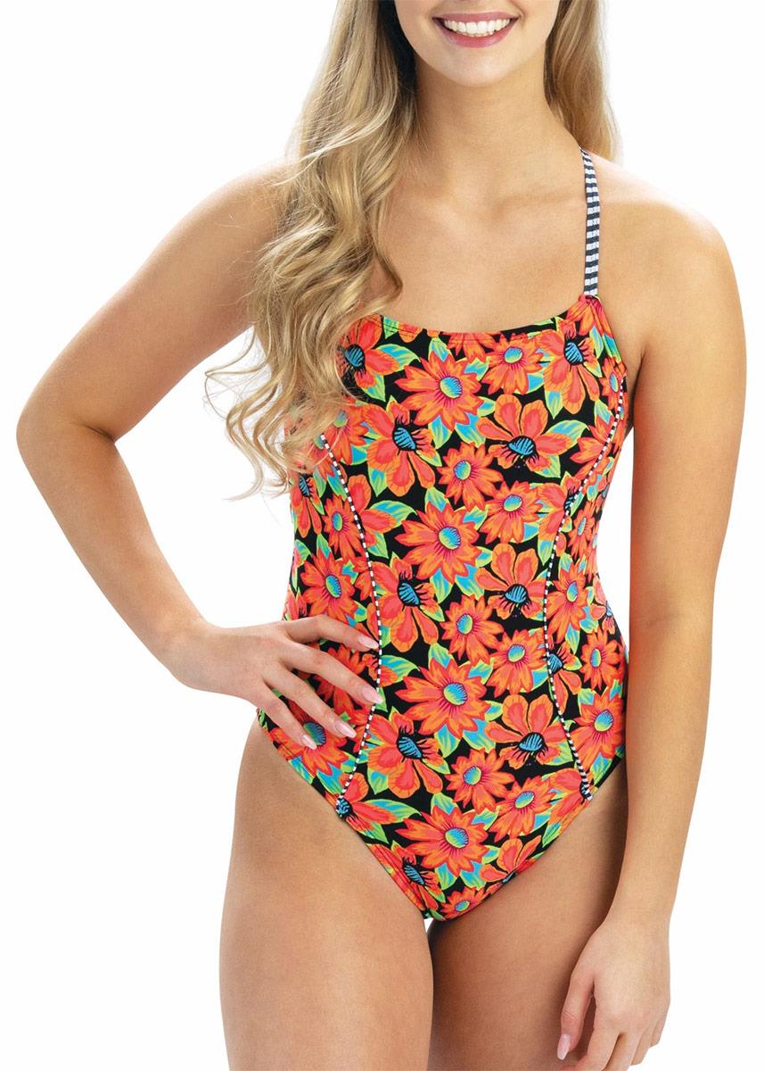 With a virbrant burst of colour and an diamond shaped back strap, this swimsuit provides great freedom of movement for the shoulders and comfortable for wearing in long periods of time!