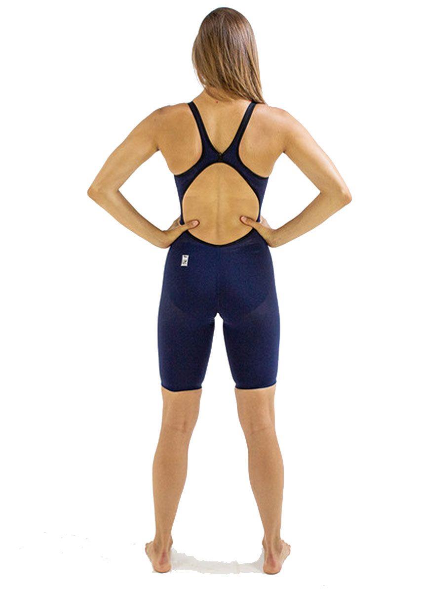 The new navy blue FINIS Fuse technical Openback Kneeskin is an introductory-level racing suit that offers elite-level results.