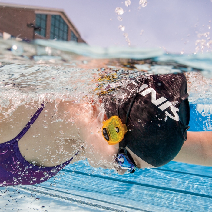 The small, waterproof device easily secures under a swimmer’s cap and transmits an audible tempo beep. Swimmers use the beep to train smarter and discover their perfect pace. Now with the option to replace the battery, the Tempo Trainer Pro will last multiple lifetimes. The advanced unit also has a new Sync button and a new mode in strokes/strides per minute for increased functionality. The Tempo Trainer Pro includes a clip for dry land exercise.