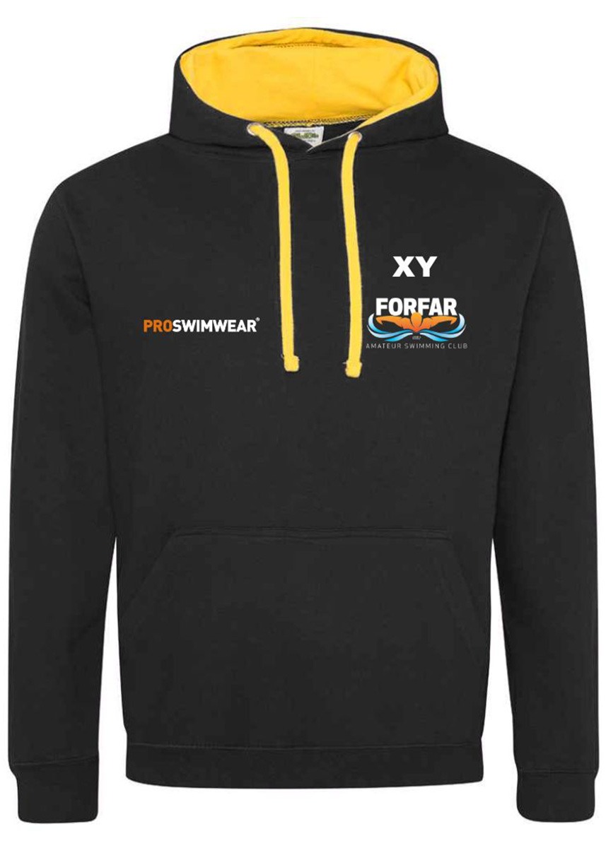 Comfortable and warm hooded sweatshirt, personalized for ForFar Swimming Club members!