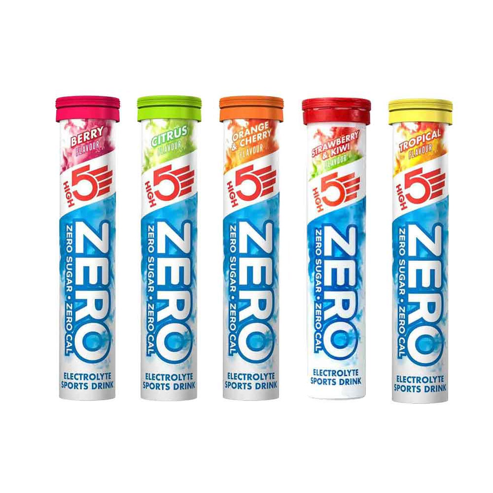 The High5 ZERO tabs give you a refreshing, great tasting, sugar free electrolyte drink with zero calories that makes it simple and easy to stay hydrated. These High5 tabs are suitable for use during exercise and throughout the day. When you sweat, you lose vital minerals so it’s important that they are replenished. With key electrolytes, sodium and magnesium, ZERO gives you what water can’t.