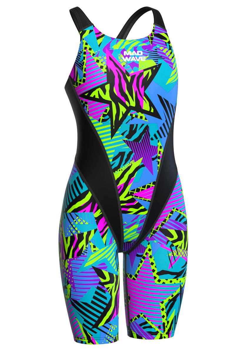 The colourful Mad Wave girls Star kneeskin is a great choice for young swimmers that would prefer more coverage than a swimsuit offers.