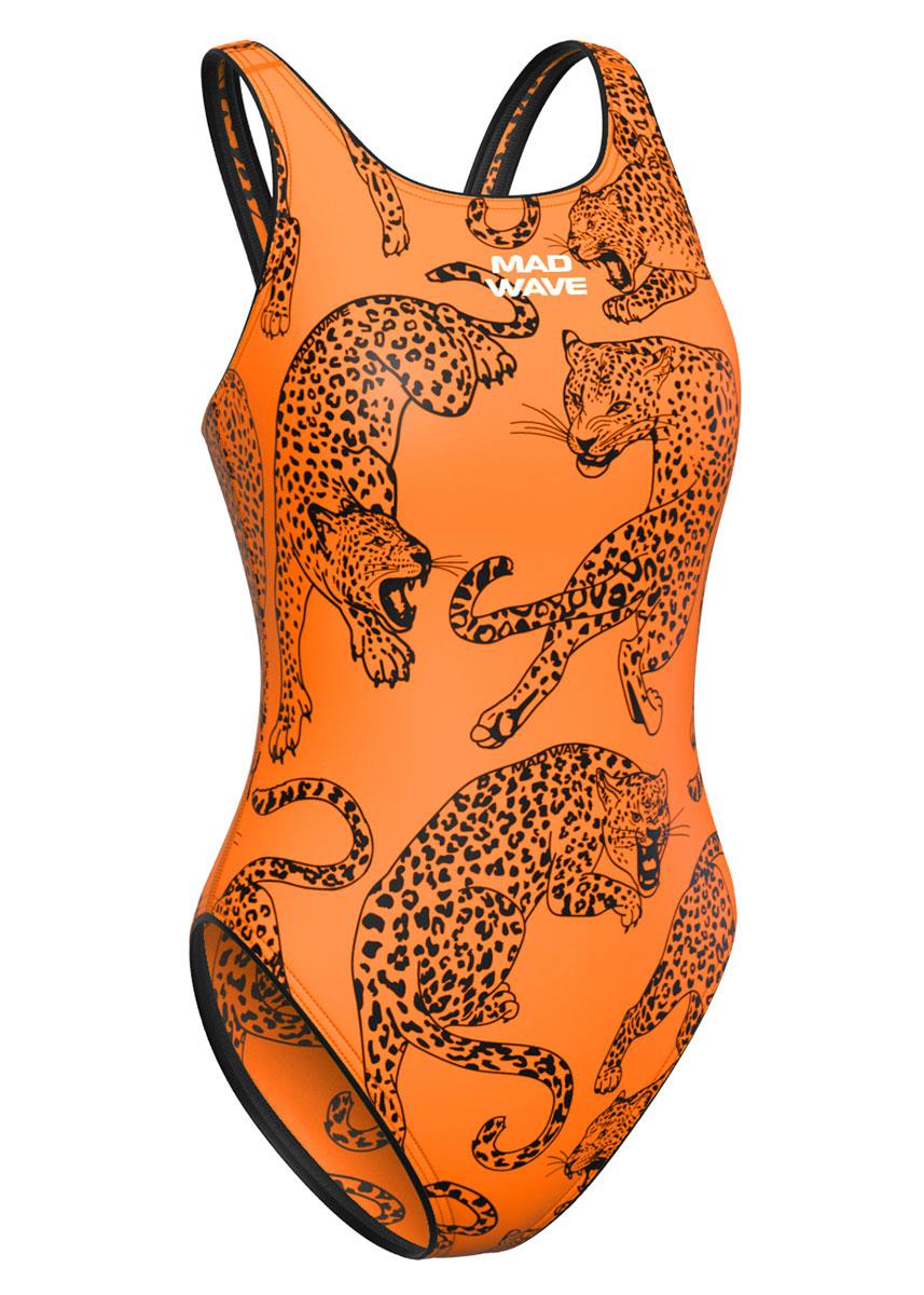 This Mad Wave swimsuit features a leopard-inspired print on an Orange base.