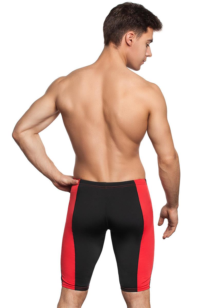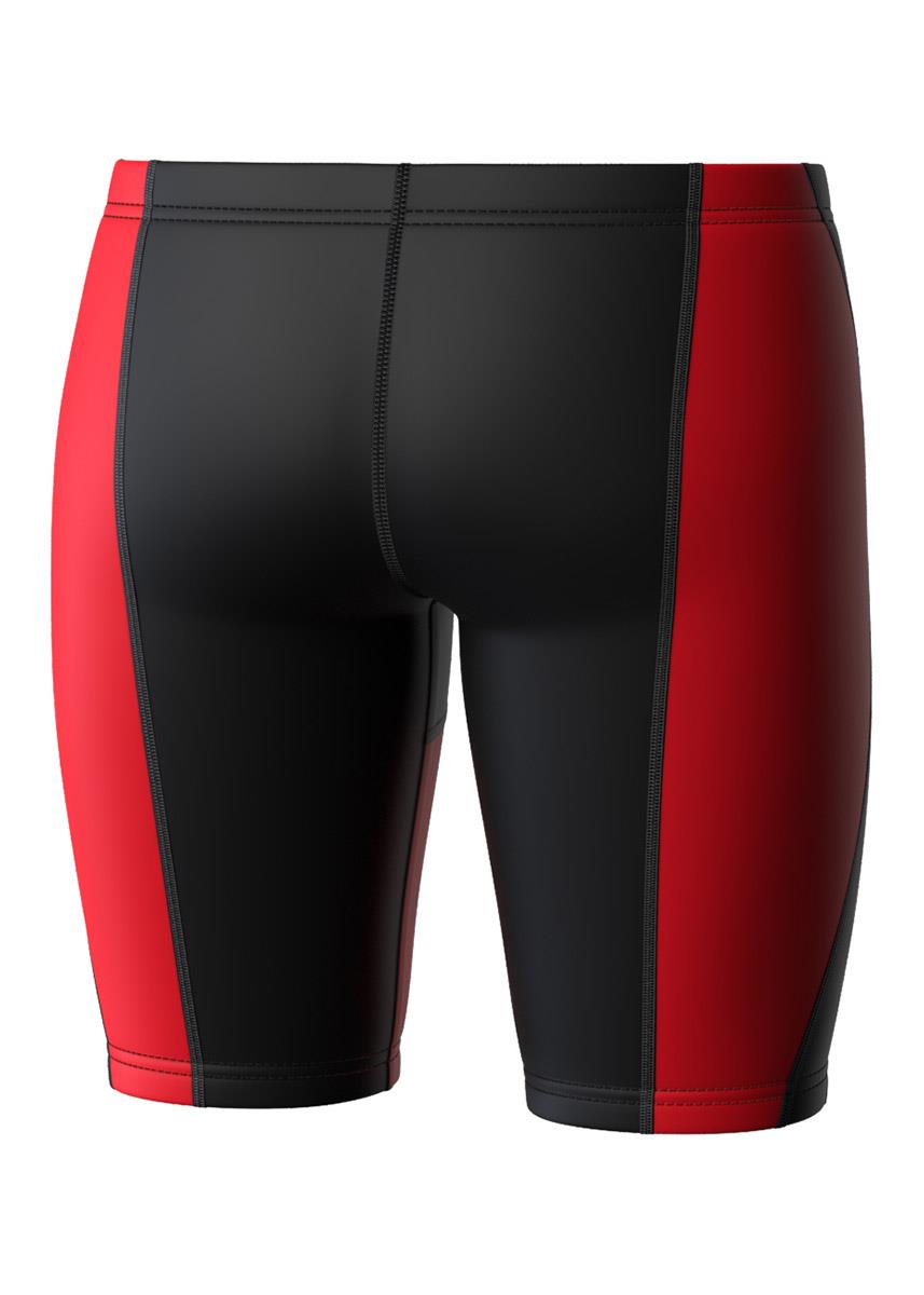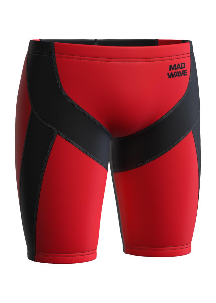 These black and red Mad Wave Power PBT low-waist Jammers are designed for frequent use and prolonged workouts.