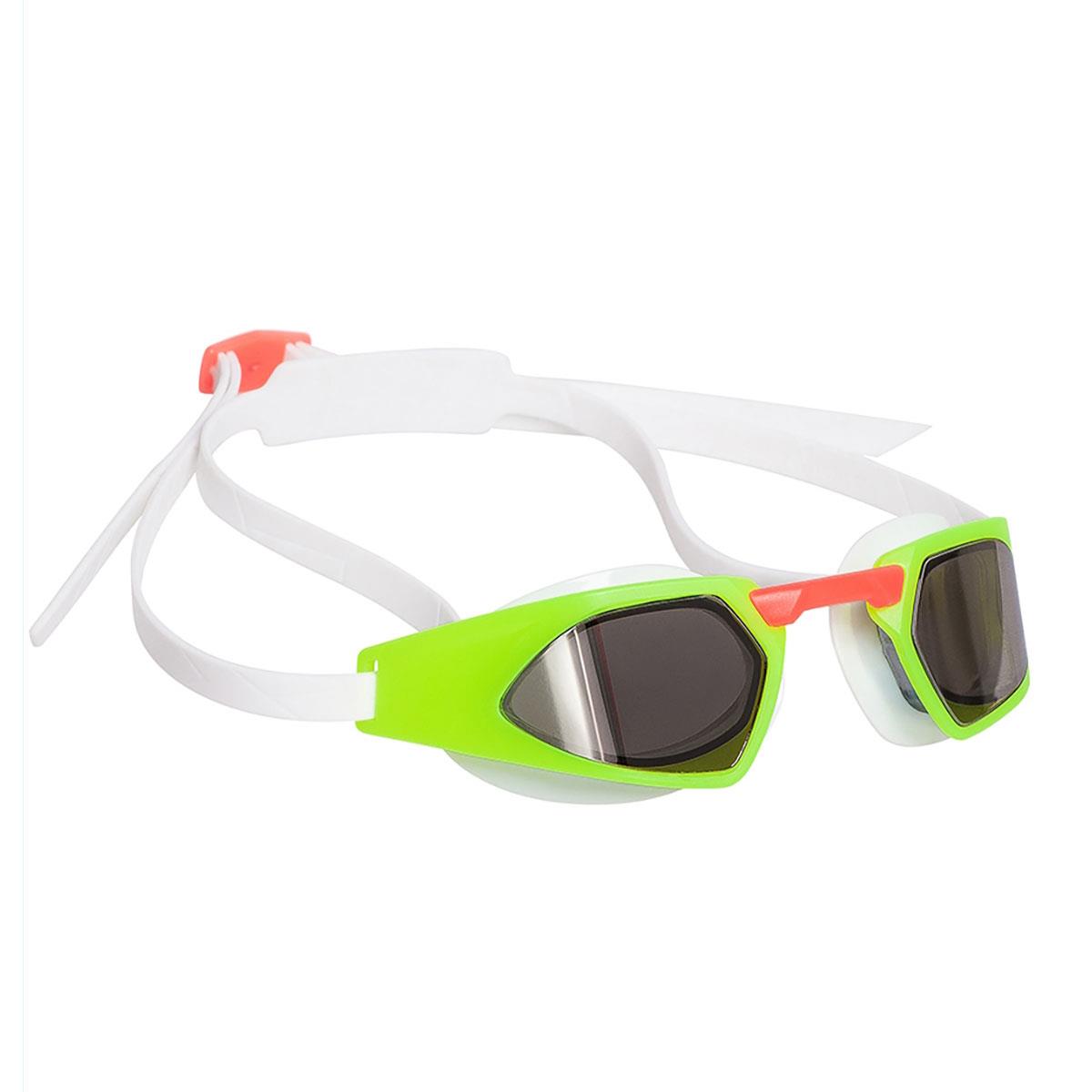 Mad Wave X-BLADE Mirror racing goggles, designed for competitive swimmers, feature special lens construction providing wide peripheral vision.